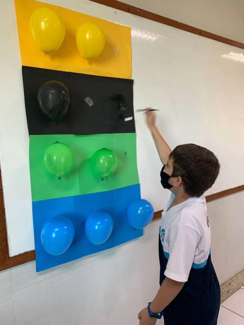 Que tal estudar matemática brincando? Essa foi a proposta da disciplina para o 4º ano fundamental do CENSA, na aula de 22 de março. Tendo o brinquedo Pop It como referência, a garotada relembrou a tabuada estourando balões e respondendo os desafios. E ainda teve brinde! A estratégia empolgou os alunos que interagiram com entusiasmo e atenção dobrados. "A fórmula é simples: ludicidade + alegria = rico aprendizado de matemática", afirmou a professora Paula Gama.