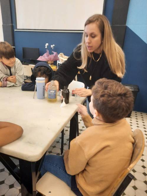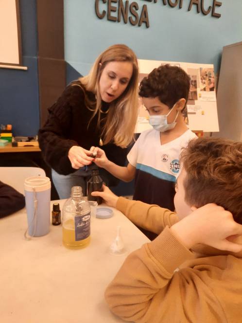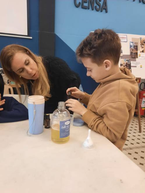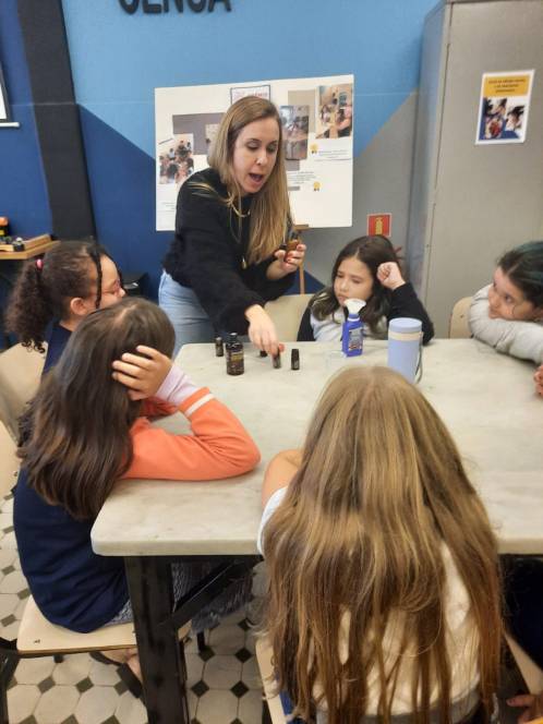 O 2º ano fundamental do CENSA recebeu a farmacêutica Mariana Loureiro, na segunda-feira, 22/08. Apaixonada por produtos naturais, a convidada compartilhou sua experiência e prática com o uso de óleos essenciais. A visita ilustrou o estudo sobre sustentabilidade, que está sendo aprofundado pelos alunos. Mariana apresentou os diferentes óleos, seus benefícios e convidou a turma a desenvolver três produtos: um sabonete líquido, um desodorante e um perfume.