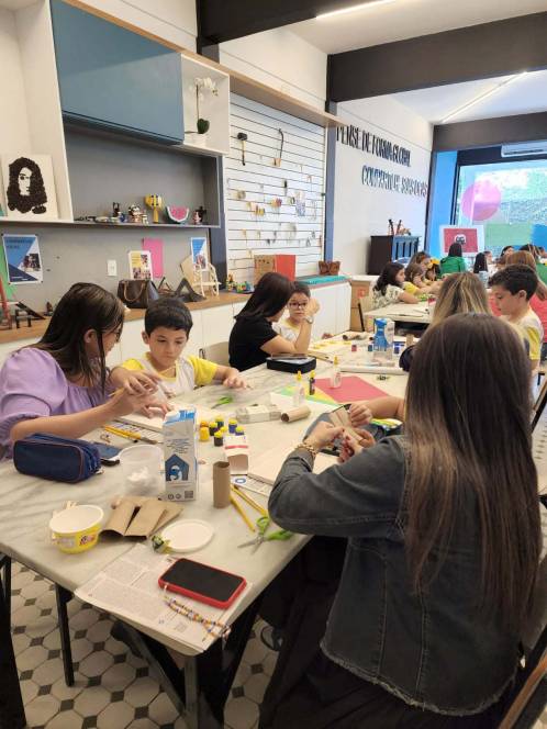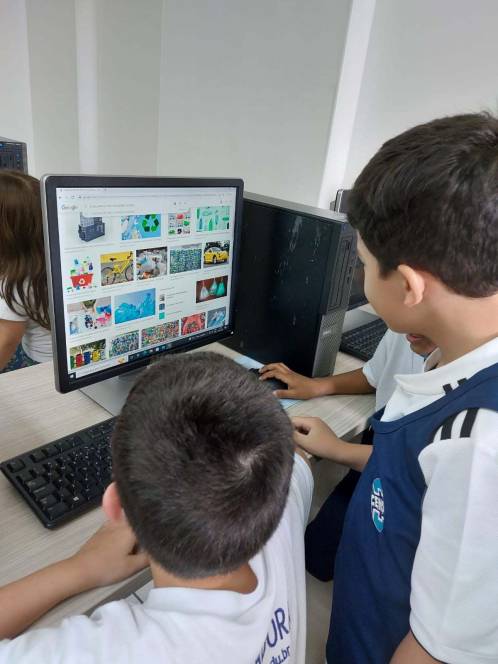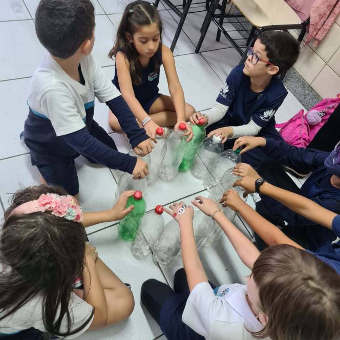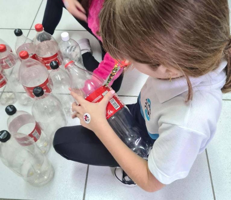 Desenvolvendo o projeto "Lixo zero: seja consciente", o 2º ano fundamental do CENSA realizou uma série de atividades para implementar o trabalho. O tema nasceu a partir da observação da quantidade de lixo produzido pelos alunos durante o intervalo das aulas. O assunto rendeu debates e a conscientização da necessidade de mudanças comportamentais que levassem a uma redução substancial da geração de lixo. "O lema adotado foi prevenção, redução, reciclagem e reuso", explicou a professora Ellen Beliene. A partir daí, os alunos deram início à pesquisas em livros, documentários na internet e encontros com profissionais, munindo-se de todo conhecimento disponível para encontrar soluções práticas. Dentre os muitos vídeos assistidos, o "Lixo extraordinário", que registra o trabalho do artista plástico Vik Muniz, se destacou e até rendeu uma dinâmica artística com os pais, no makerspace da escola. Decididos a criar uma representação do seu projeto, colocaram a mão na massa para a confecção de uma lixeira utilizando garrafas pet como matéria prima. Integrando a disciplina de robótica, projetaram a ideia em 3D, na plataforma TINKERCAD, e a batizaram de Lixeira Inteligente. Desenho pronto, partiram para a arrecadação de garrafas, mobilizando a comunidade educativa e familiar, que mostraram grande engajamento.