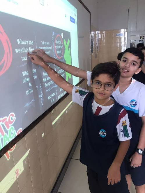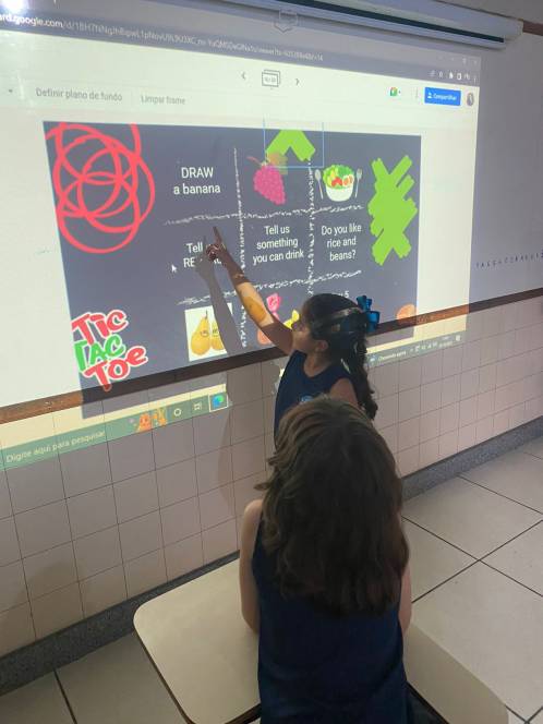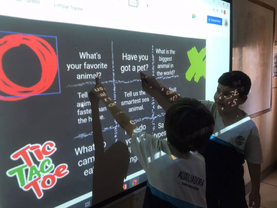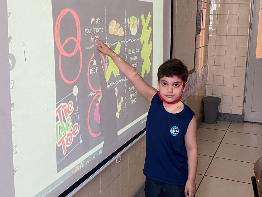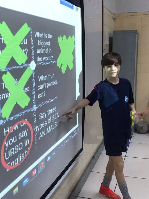 A equipe bilíngue do CENSA organizou uma aula divertida para o ensino fundamental I, na sexta-feira, 21/10. Usando o clássico Jogo da Velha, tic tac toe, os alunos revisaram o vocabulário e a gramática respondendo perguntas. Cada ano escolheu um tema: o 1º, food; o 2º, numbers and transportation; o 3º e o 4º, animals e, o 5º, weather. Uma aprendizagem dinâmica e lúdica é sempre mais produtiva!