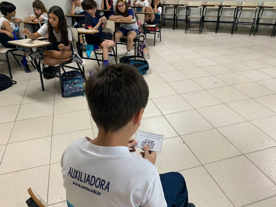 O 3º ano fundamental do CENSA revisou os conteúdos de História atráves de um game, na terça-feira 1º/11. Divididos em equipes, os alunos participaram do "Perguntas e Respostas", com os tópicos estudados no semestre. A dinâmica também possibilitou exercitar o diálogo e a cooperação entre as equipes. Segundo a professora Gabriela Porto, "utilizar os jogos como recursos de ensino-aprendizagem auxilia na construção dos saberes, na leitura, na escrita, na interpretação e no desenvolvimento social". Sem dizer que é super divertido e os alunos adoram!