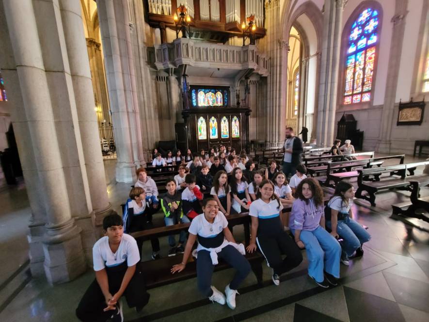 Ilustrando o conteúdo da disciplina de História do 1º semestre letivo, Monarquia no Brasil, o 5º ano fundamental do CENSA participou de uma excursão pedagógica, no dia 26/10. O destino foi a cidade imperial, Petrópolis, RJ. Empolgadíssimos, 41 alunos visitaram o Museu Imperial, a Casa de Santos Dumont, a Catedral, o Quitandinha e o Palácio de Cristal. Ali conheceram inúmeras fontes históricas, como mobiliário, documentos, obras de arte, hábitos e objetos pessoais da família real, refletindo sobre as diferentes maneiras de agir e pensar da época, contextualizando decisões do passado que influenciam o país até hoje. "Foi uma volta ao passado, rico em significado para o conteúdo estudado. Ficou evidente para os alunos a importância do museu como proteção da memória coletiva", disse a professora Paula Abilio.