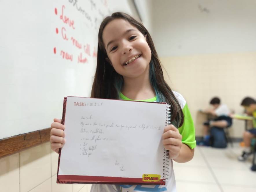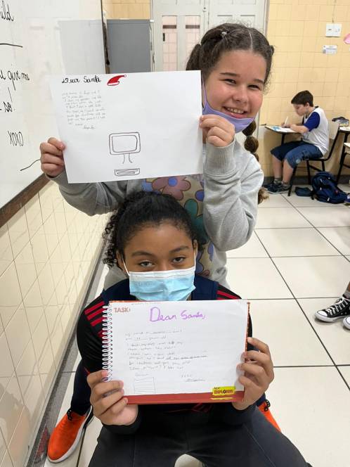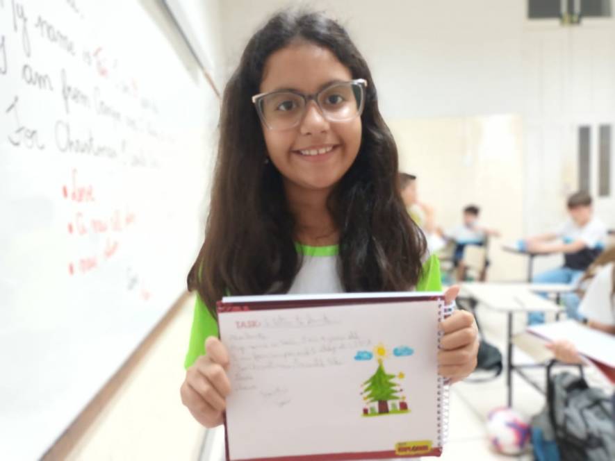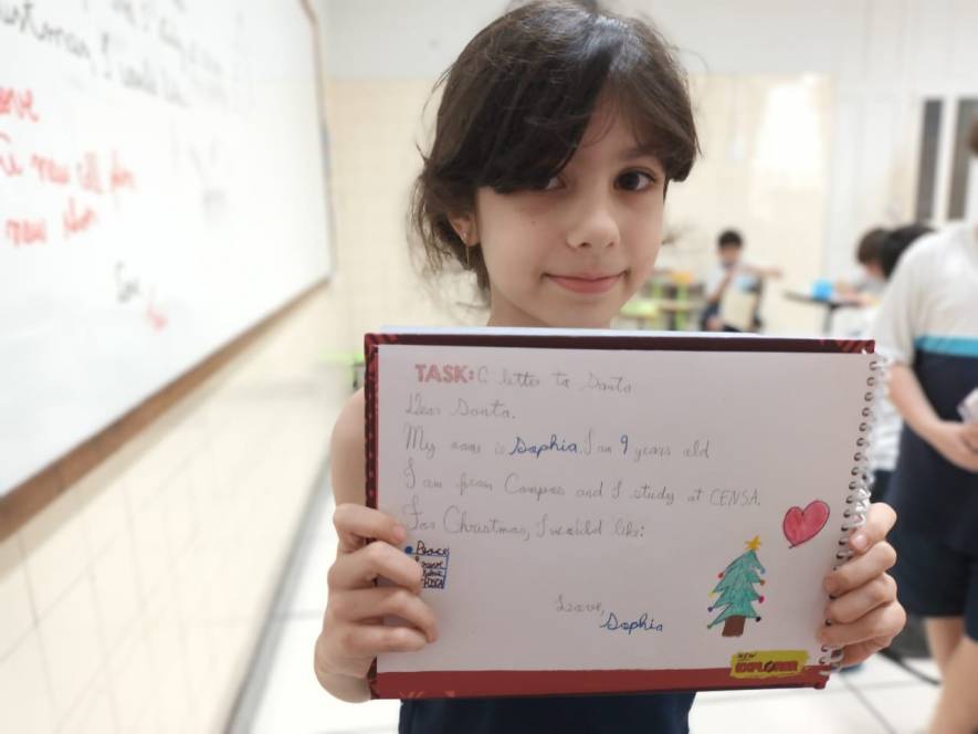 Despedindo-se do ano letivo e já em clima de Natal, o Programa Bilíngue do CENSA propôs trabalhar uma escrita, "writing", sobre "Dear Santa" (Querido Papai Noel). Na quinta-feira, 1º/12, os alunos do 3º e 5º anos do ensino fundamental escreveram suas cartinhas, exercitando não só o vocabulário mas, também, a gramática, utilizando construções verbais variadas. Finalizando, lindos desenhos ilustraram as criações.