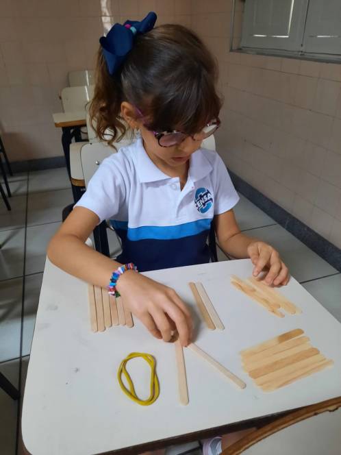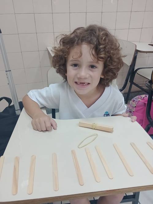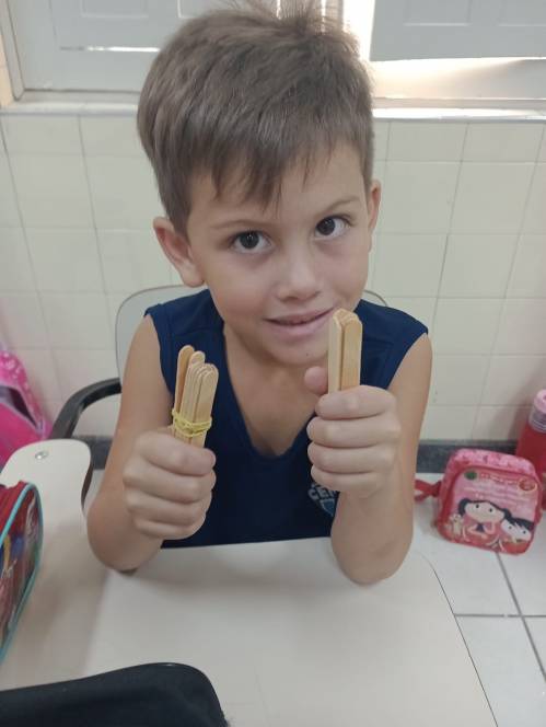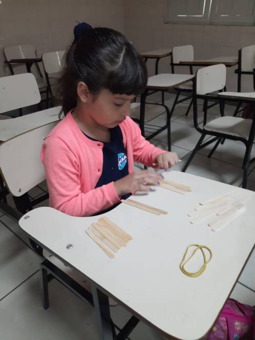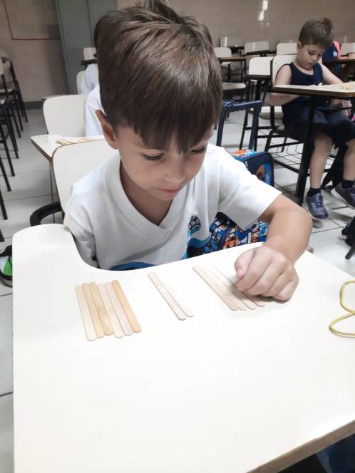 A aula de matemática do 1º ano fundamental do CENSA, da terça-feira, 14/03, contou com o auxílio de palitos. O objetivo foi construir fatos básicos utilizando material concreto para melhor compreensão dos conceitos. Cada aluno recebeu uma porção de palitos e com eles fizeram cálculos, trabalhando dezenas. "A atividade possibilitou fazer a conexão da linguagem matemática com os objetos e situações apresentadas. O material concreto é um grande aliado no ensino da matemática", explicou a professora Shirley.