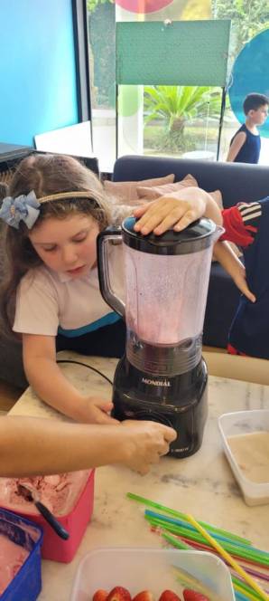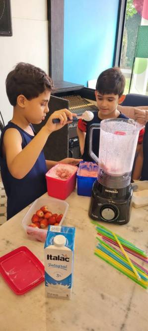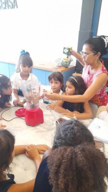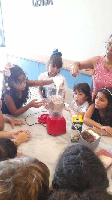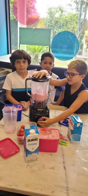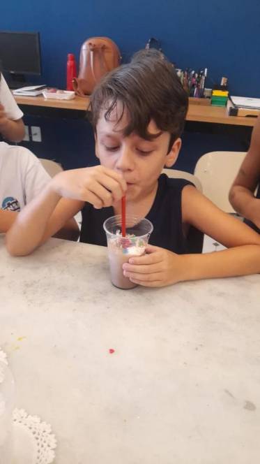 Trabalhando o gênero textual receitas culinárias, o 2º ano fundamental do CENSA teve uma aula deliciosa, na segunda-feira, 20/03. A proposta foi ver concretamente as características do gênero e colocar em prática, seguindo as instruções do texto. O resultado foi um gostoso milk-shake, saboreado com gosto pelos alunos e professores.