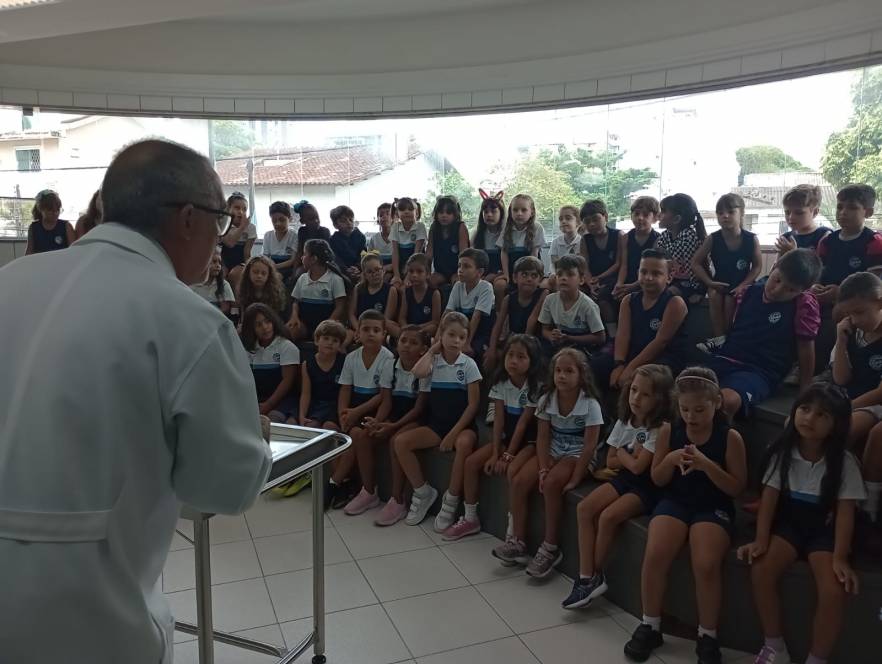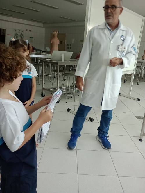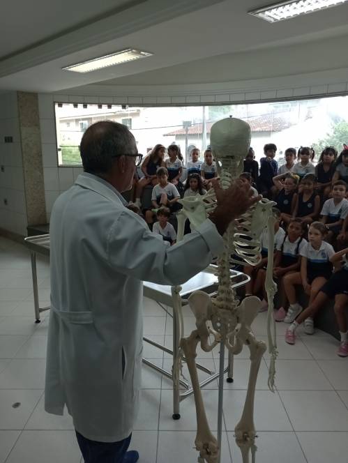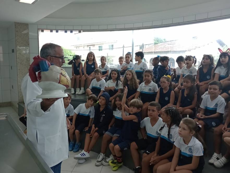 O 1º ano fundamental do CENSA aprendeu um pouco mais sobre os cientistas, na sexta-feira, 24/03. Visitando o Laboratório de Anatomia da escola, os alunos entrevistaram Ricardo Pereira, responsável técnico pelo local, conhecendo detalhes e curiosidades sobre essa profissão tão importante para a sociedade e encantadora para a galerinha.