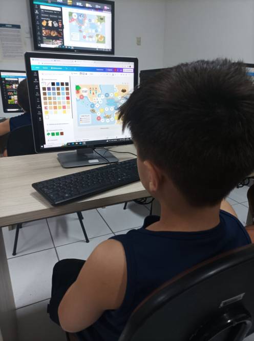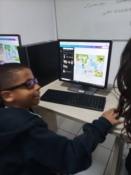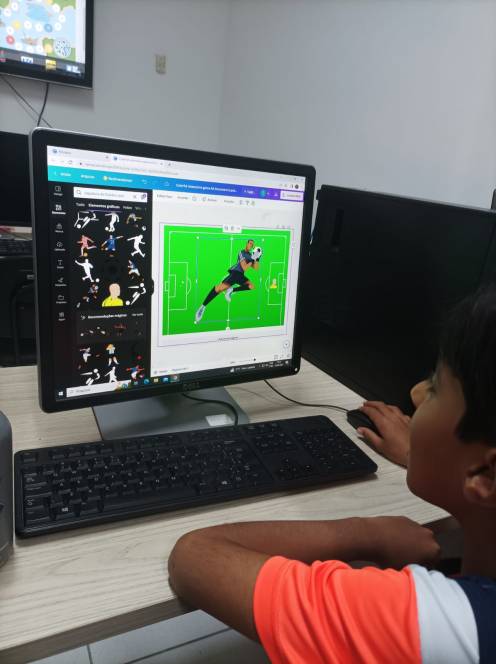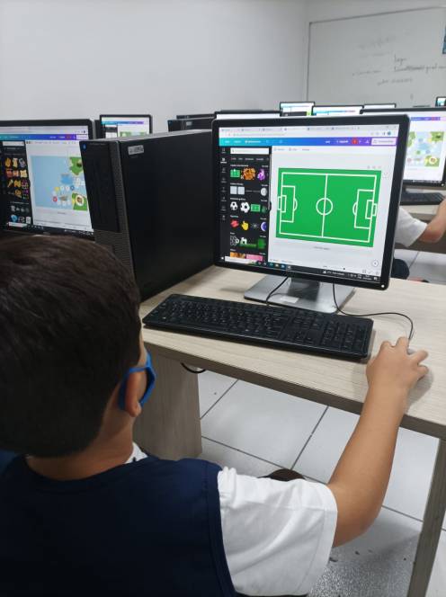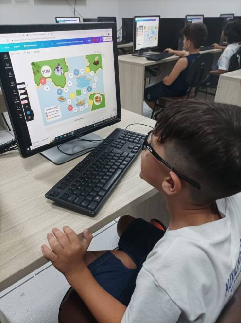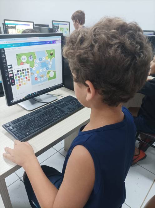O 4º ano fundamental do CENSA conheceu o Canva, na aula de computação de 10/04. Muito popular e versátil, o aplicativo permite produzir diferentes materiais de apoio ao conhecimento pedagógico, inclusive jogos. Os alunos foram apresentados às ferramentas e logo iniciaram o jogo de tabuleiro, desenvolvendo estratégias, habilidades de conhecimento computacional e criatividade. "Dominar esse aplicativo permitirá que os alunos organizem informações em estruturas, com dados e imagens. Com certeza, irão utilizá-lo muito ao longo da vida estudantil" , afirmou a professora Bianka Martins.