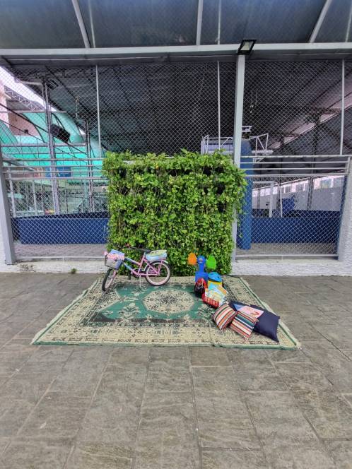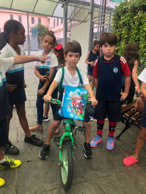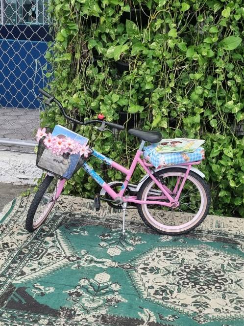 A primeira foi a Cicloteca, uma bicicleta repleta de contos e histórias infantis, em um espaço aconchegante, para garantir uma boa leitura.