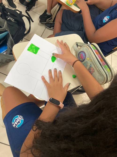 "A dinâmica mostrou como a Matemática está presente no nosso cotidiano, inclusive na arte", disse a professora Ana Júlia. A finalização dos trabalhos foi com massa de modelar colorida, animando os autores pelo inusitado do material. "Eles se surpreenderam com o uso da massinha e adoraram ver os desenhos ganhando cores vibrantes e uma textura maravilhosa", disse o professor de Artes, Luiz Carlos Soares.