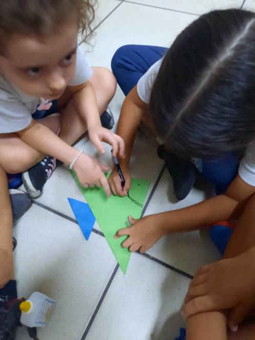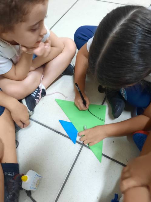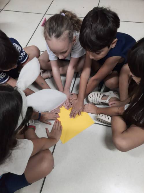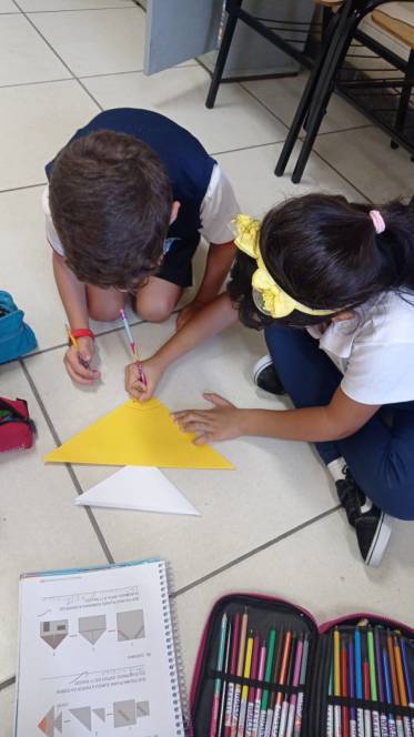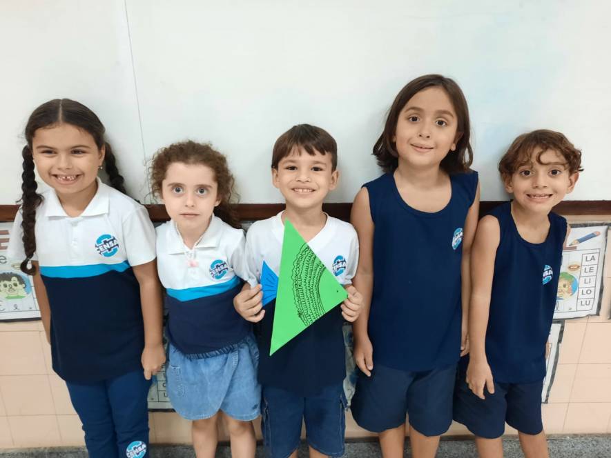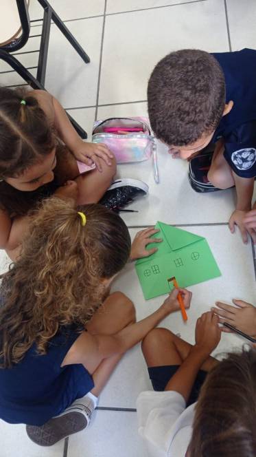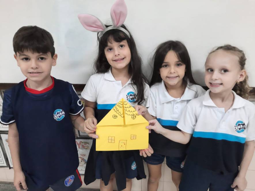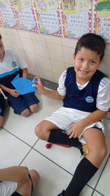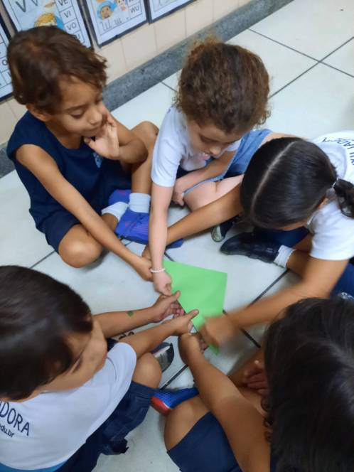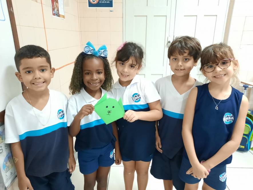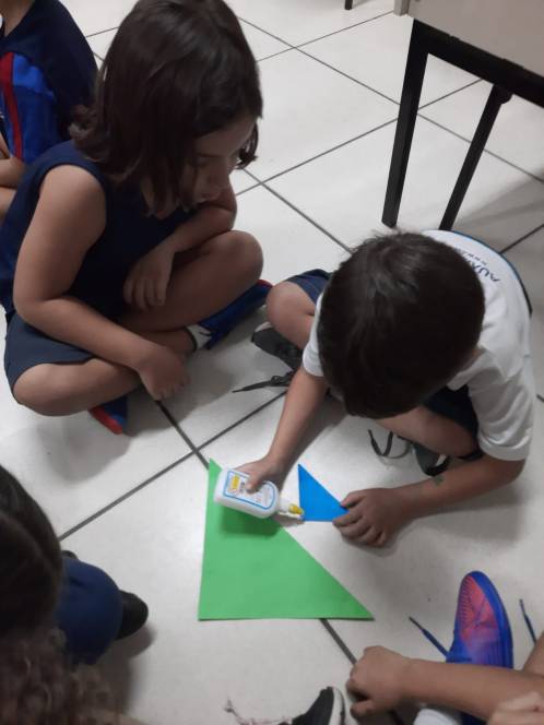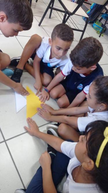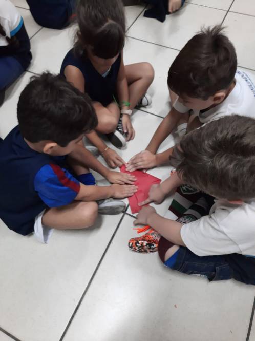 A atividade do 1º ano fundamental do CENSA na terça-feira, 02/05, foi oficina de dobradura. Divididos em grupos, os alunos usaram papéis coloridos para criar figuras e, depois, descobrir as formas geométricas. Uma maneira criativa de estudar o conteúdo de matemática.