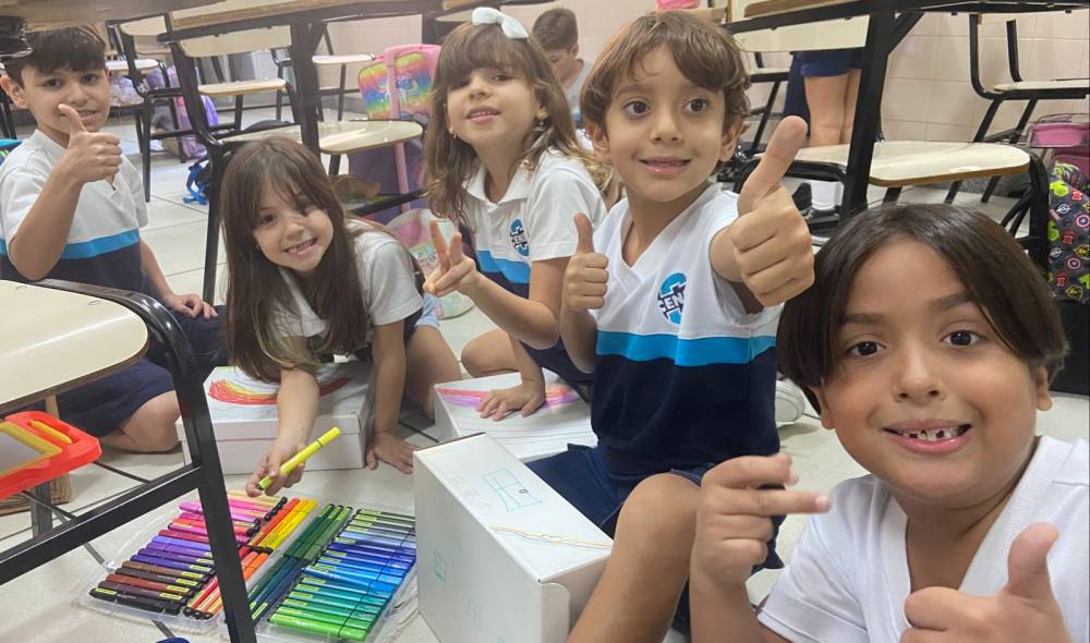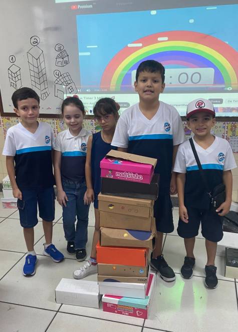 Sempre criativo, o Programa Bilíngue propôs uma atividade maker para o 1º ano fundamental do CENSA, na quinta-feira, 29/07. Com o objetivo de sistematizar o conteúdo de tamanhos, a proposta foi criar casas e prédios, utilizando caixas de sapato, e, usá-los para enriquecer o vocabulário com bigger, smaller, taller, shorter. Divertido, motivador e de grande aprendizado!