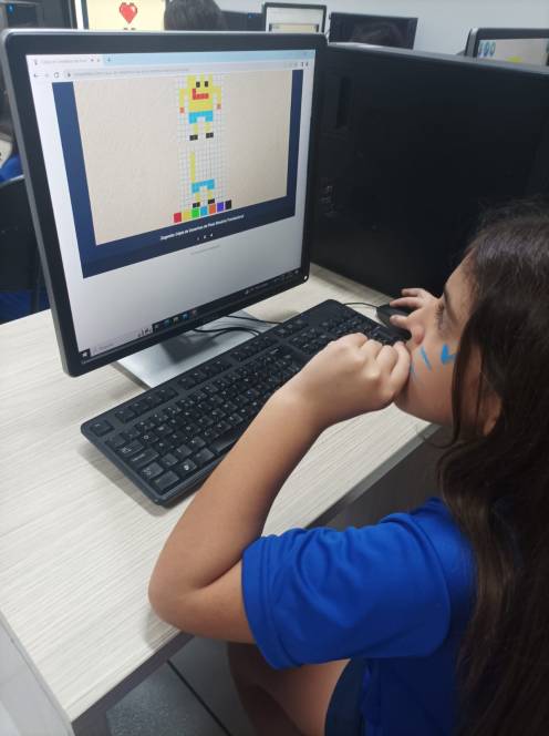 "A prática estimulou a observação de partes do computador, reconhecimento e localização das letras e compreensão do funcionamento do algoritmo, pensamento essencial para as aulas de computação", afirmou a professora Bianka Martins.
