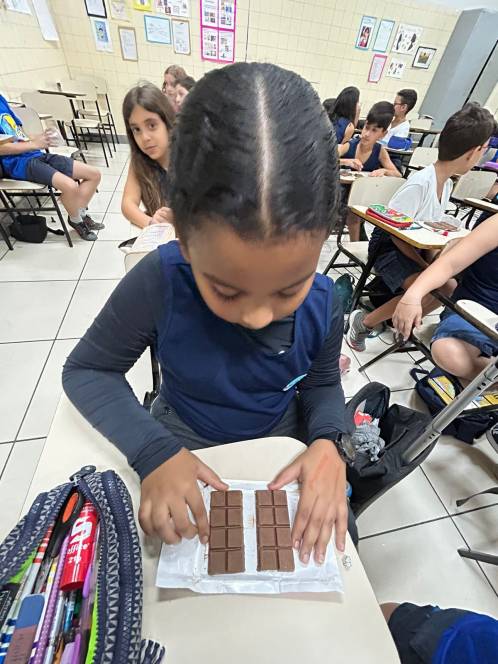 Comprometido com um aprendizado criativo e contextualizado, o CENSA sempre inova em suas aulas. E foi o que aconteceu na disciplina de matemática do 4º ano fundamental, nos dias 2 e 4 de agosto. Abordando frações, os alunos usaram o chocolate como recurso didático para compreender conceitos como denominador, numerador e divisão. O estudo finalizou com um quiz para comprovar o aprendizado e o resultado não poderia ser outro: um sucesso!