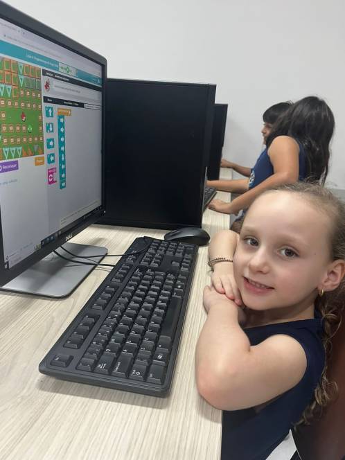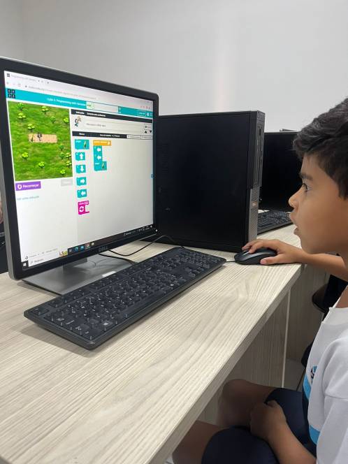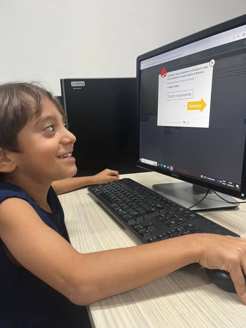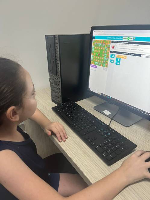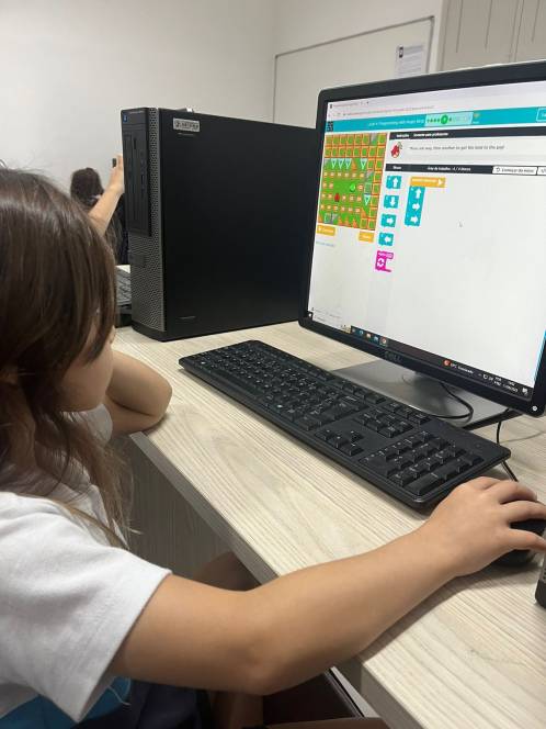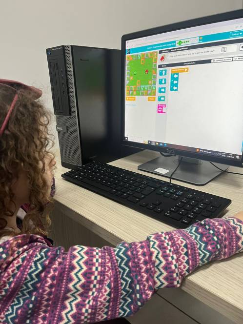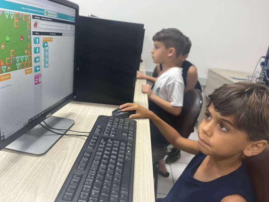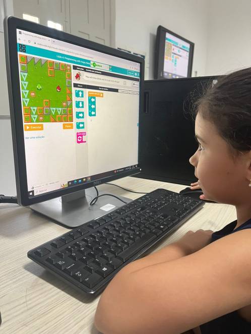 O 1º ano fundamental do CENSA utilizou a plataforma Code.org, na aula de computação da segunda-feira, 11/09. Com o objetivo de desenvolver habilidades de programação, a atividade propunha empilhar blocos de códigos e formar uma sequência linear para mover o Red, do "Angry Birds", de um lado do labirinto ao outro. "O formato baseado em blocos de quebra-cabeças ajuda os alunos a aprenderem sobre sequências, além de experimentar ações de programação baseadas em bloco padrão, como clicar, arrastar e soltar", explicou a professora Larissa Gomes.