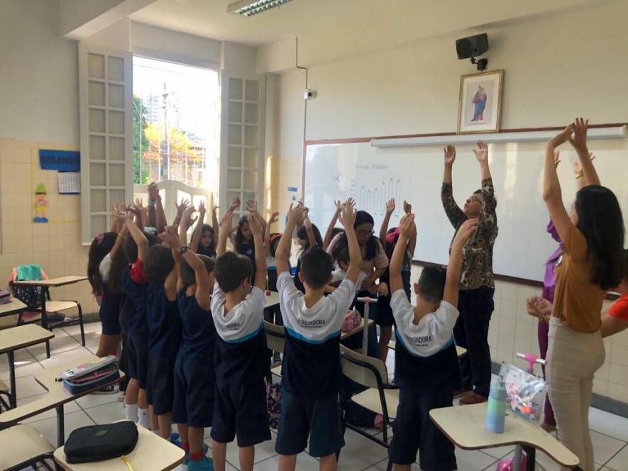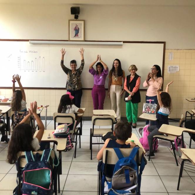 Durante o mês de setembro, a turma 204 , do Ensino Fundamental I intensificou suas pesquisas sobre o projeto "Doar, um ato de amar: pequenos gestos mudam o mundo". Entre as várias dinâmicas desenvolvidas, receberam a Dra. Eleonora Chagas Martins, secretária do ISECENSA e fundadora do "Projeto Raphael Martins", para um momento de reflexão. A convidada falou sobre o trabalho voluntário que desenvolve junto às pessoas em situação de rua, ressaltando o amor como primeira doação a ser feita. "Esse é primeiro passo. Amar significa partilhar e doar", disse ela.