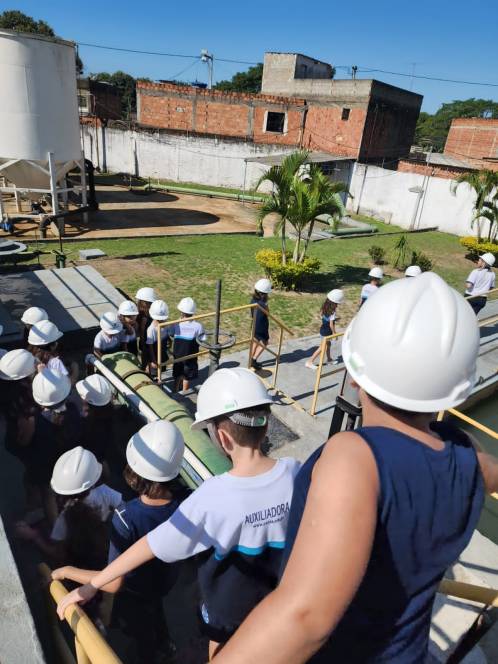 A turma 202 do Fundamental I do CENSA participou de uma aula de campo, na terça-feira, 19/08. Em visita à empresa Águas do Paraíba - ETA COROA, os alunos conheceram a estação de tratamento de água, o "composto do bem", feito a partir do lodo do esgoto, participaram de práticas separando o lixo corretamente e aprenderam a importância do reaproveitamento do lixo orgânico na compostagem e o quanto isso diminui a contaminação do solo e dos lençóis freáticos. A atividade fez parte do projeto "ECO Banana", desenvolvido atualmente pela turma. "Aulas de campo encantam os alunos. Assistir in loco o tema que pesquisam é motivador e facilita o aprendizado", disse Criscilamara Neves, coordenadora do segmento.