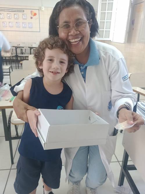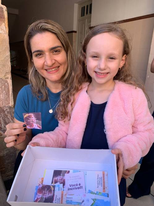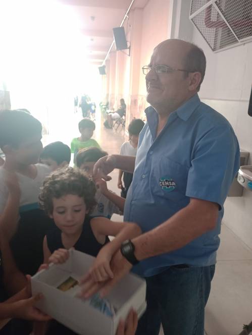 "Doar um ato de amar: pequenos gestos mudam o mundo". Seguindo o lema do projeto que desenvolve atualmente, o 1º ano fundamental do CENSA percorreu a escola, na quinta-feira, 21/09, distribuindo mensagens positivas para os funcionários, professores e irmãs. "Podemos demonstrar carinho de várias maneiras e nossas crianças aprendem que mesmo nos pequenos gestos o amor pode ser demonstrado", disse a professora Lilian Boa Morte.