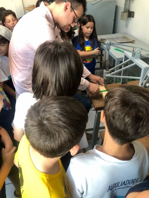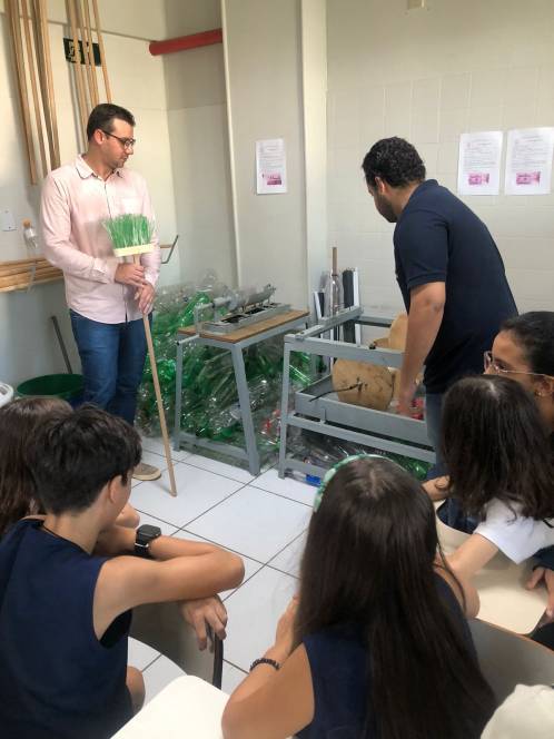 O processo foi apresentado pelo coordenador Túlio Baita, com detalhes desde a coleta da matéria prima até a finalização do produto, ressaltando a importância de criar novas alternativas que diminuam a produção de lixo, recriando novas funções para o material que será descartado. Foi um momento de muito aprendizado!