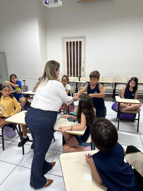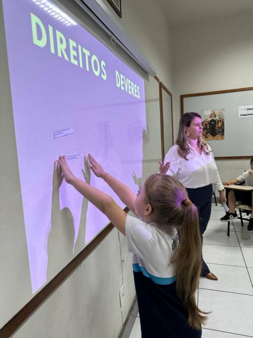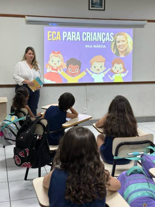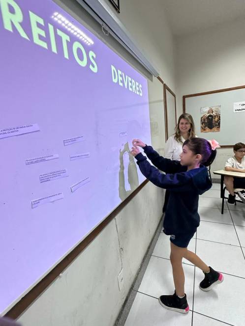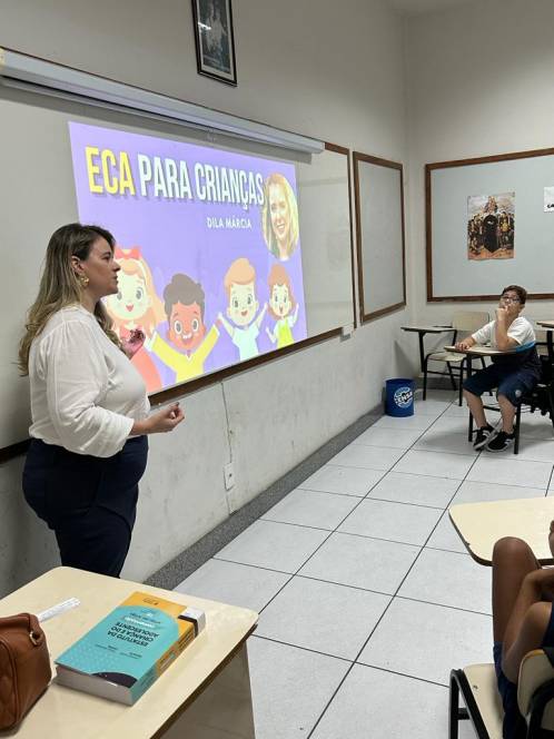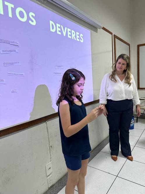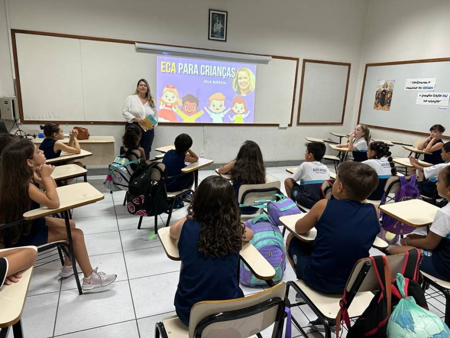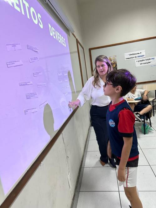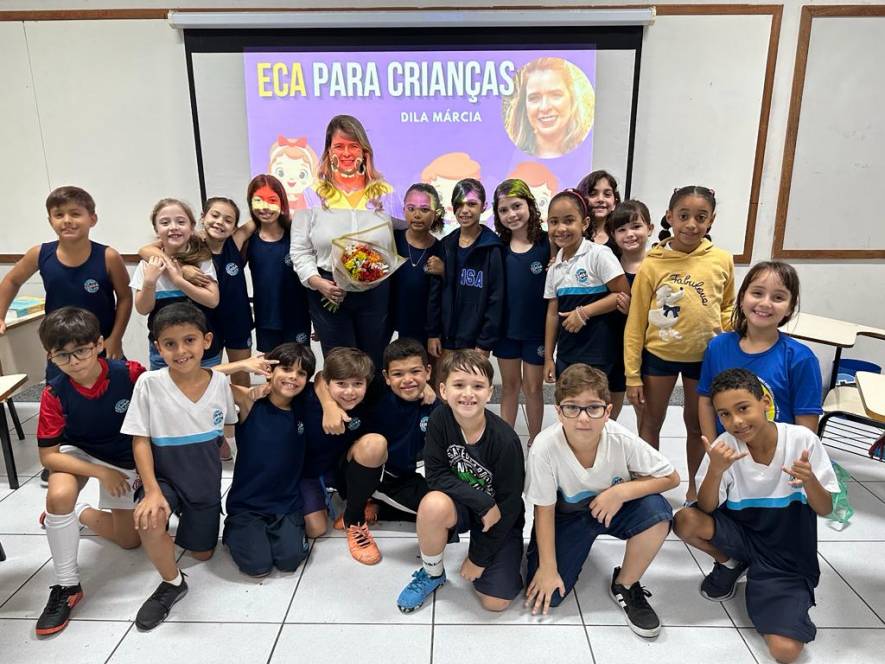 A turma 203, do fundamental I do CENSA, conheceu o Estatuto da Criança e do Adolescente, numa roda de conversa com a Dra. Dilamárcia Póvoa, na quinta-feira, 21/09. Convidada pela turma, a advogada tirou dúvidas da garotada sobre seus direitos e deveres e promoveu uma dinâmica, ressaltando a importância do tema. "Educar as crianças sobre seus direitos e deveres é crucial para promover seu bem-estar e torná-las cidadãos conscientes, que contribuirão para uma sociedade mais justa e equitativa", afirmou a professora Fabiana Alves.