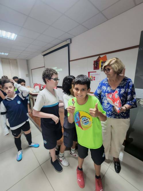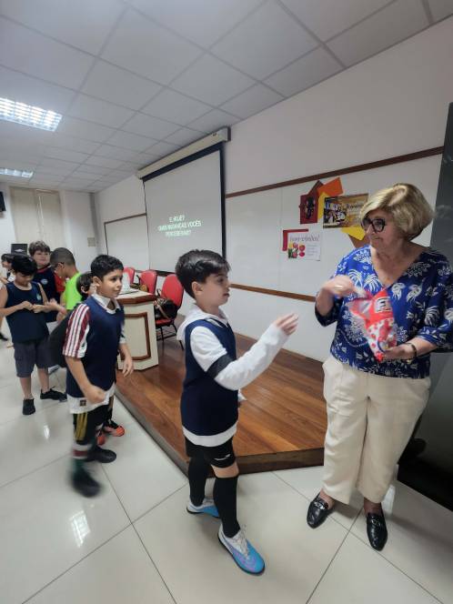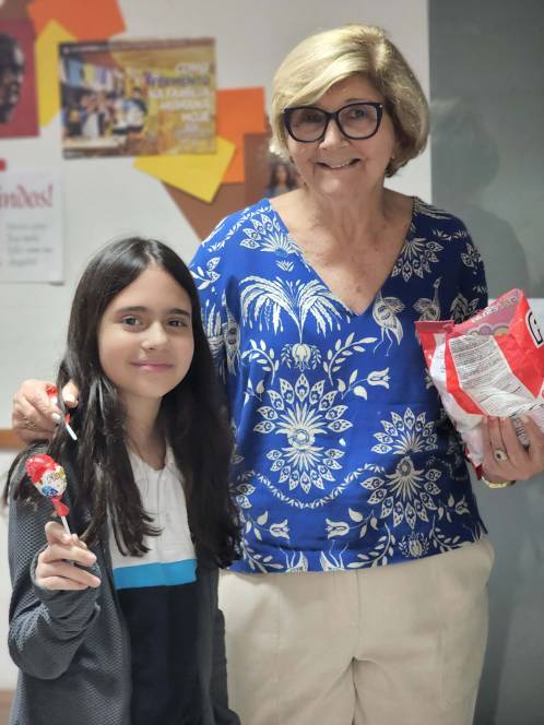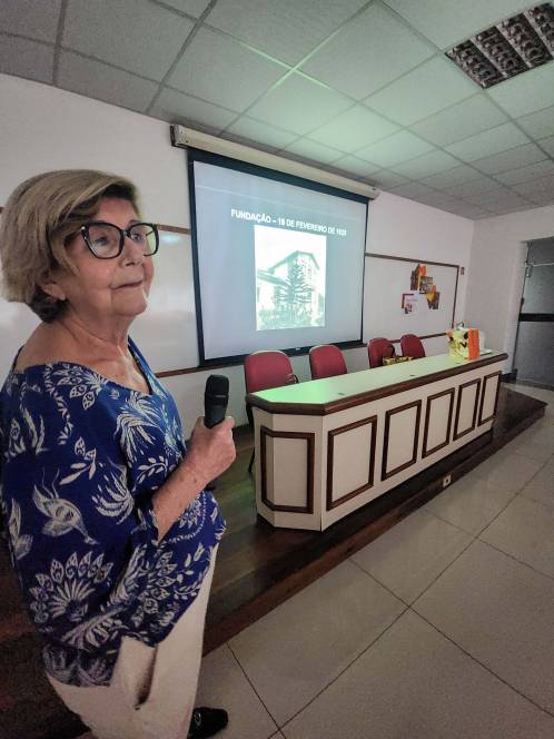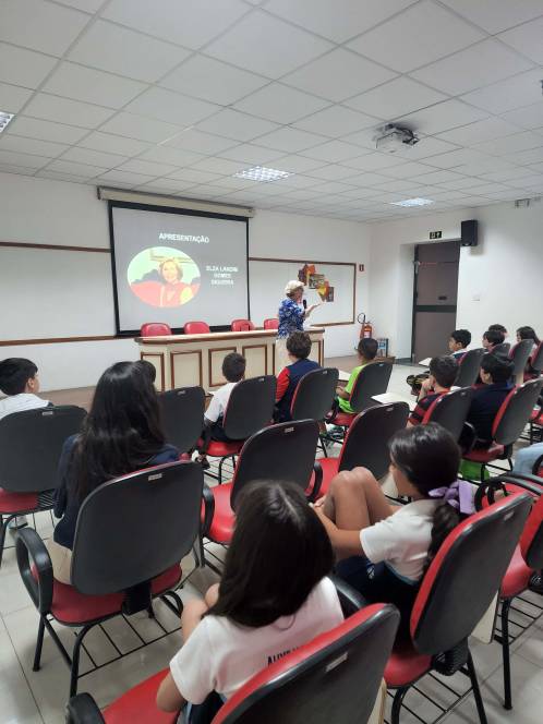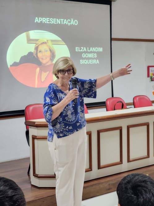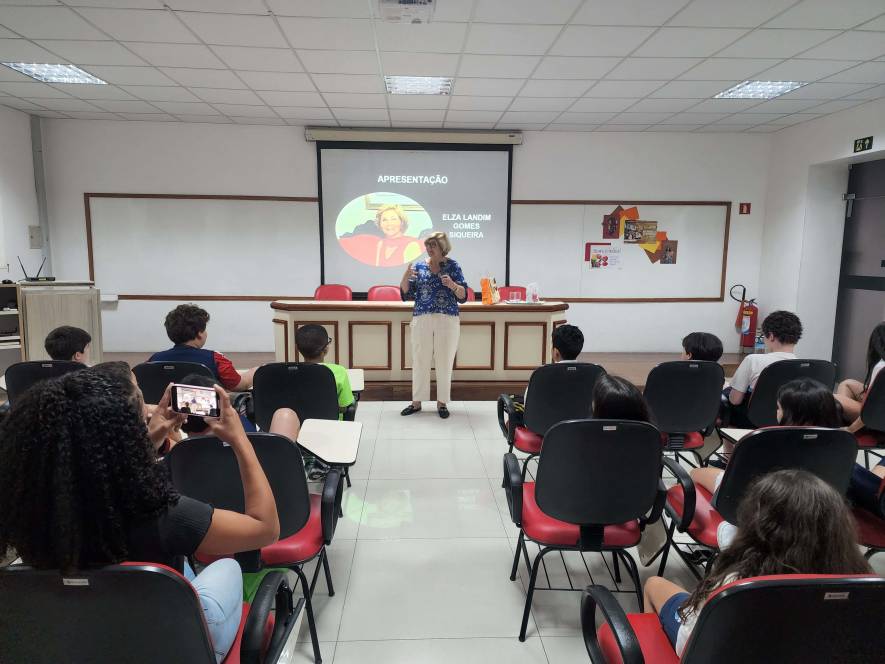 Desenvolvendo o projeto "Rumo aos 100 anos: história do CENSA, Campos dos Goytacazes", a turma 401 recebeu  Dra. Elza Landim, na quinta-feira, 19/10. Atual assessora jurídica da escola e uma das mais antigas funcionárias, Dra. Elza contribuiu imensamente com o projeto, contando fatos interessantes desde a chegada das irmãs salesianas na cidade até os dias atuais, ilustrando com fotos e curiosidades. Os alunos ficaram encantados com o tanto de história que o Auxiliadora tem!