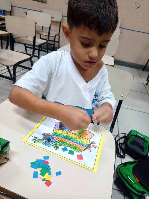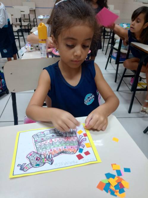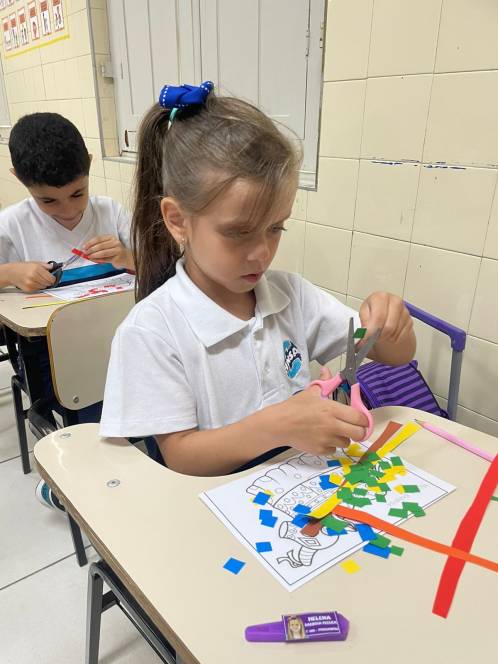 O 1º ano fundamental do CENSA conheceu mais profundamente as manifestações culturais e carnavalescas que permanecem até hoje. Para contextualizar o tema, os alunos participaram de uma dinâmica unindo as disciplinas de História e Arte, confeccionando um mural de bois pintadinhos. Usando papel picado e muito colorido, a garotada deu asas à imaginação, transformando o conhecimento adquirido em lindas criações.