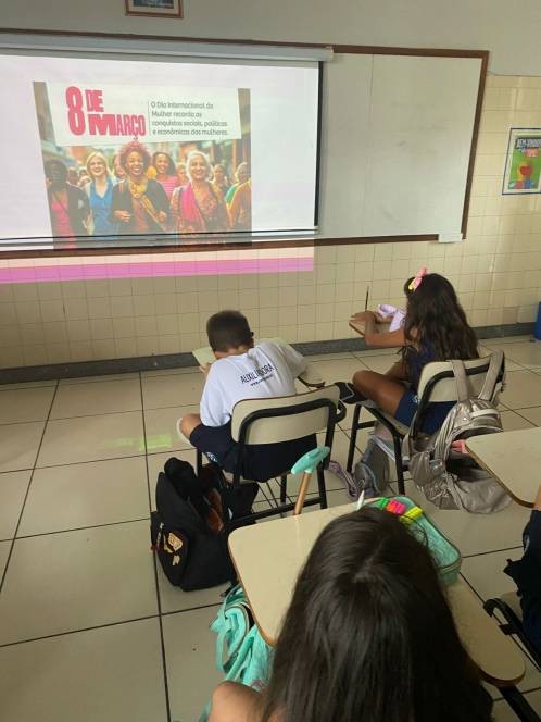 O Dia Internacional da Mulher inspirou o 3º ano fundamental do CENSA a estudar o papel feminino na história. Na sexta-feira, 8 de março, os alunos participaram de uma roda de conversa sobre o tema e o que a data representa. Várias mulheres foram lembradas pelo seu protagonismo e, entre elas, Madre Mazzarello e Irmã Suraya Chaloub, referência no nosso dia a dia.