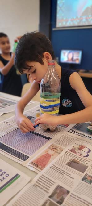O 1º ano fundamental do CENSA teve um intervalo diferente dos dias 18 e 19 de abril. Supervisionada pelas professoras, a garotada se divertiu resgatando brincadeiras indígenas como corrida do saci, queimada, peteca e cabo de guerra. O momento incluiu, ainda, uma atividade conjunta com a disciplina de Arte, com a confecção de chocalhos, brinquedos e instrumentos indígenas utilizando garrafas pet. Fechando com chave de ouro, partilharam um delicioso lanche coletivo, conhecendo a contribuição indígena também na nossa culinária. "Por meio da estratégia lúdica, os alunos aprofundaram-se na cultura indígena e conheceram o quanto ela está presente no nosso cotidiano", disse a coordenadora Criscilamara Neves.