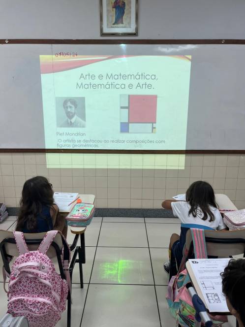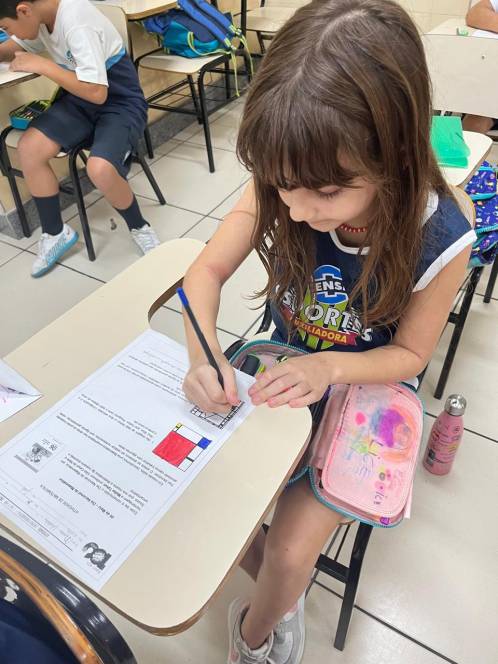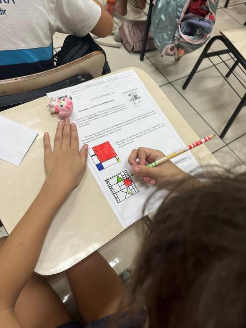 O 3º ano fundamental do CENSA também celebrou o Dia da Matemática, na segunda-feira, 6 de maio. A data foi comemorada com uma homenagem ao escritor, educador e matemático Júlio César Mello e Souza, mais conhecido pelo pseudônimo de Malba Tahan, e um mergulho na obra de Piet Mondrian, que utilizava a geometria como forma de expressar sua arte.