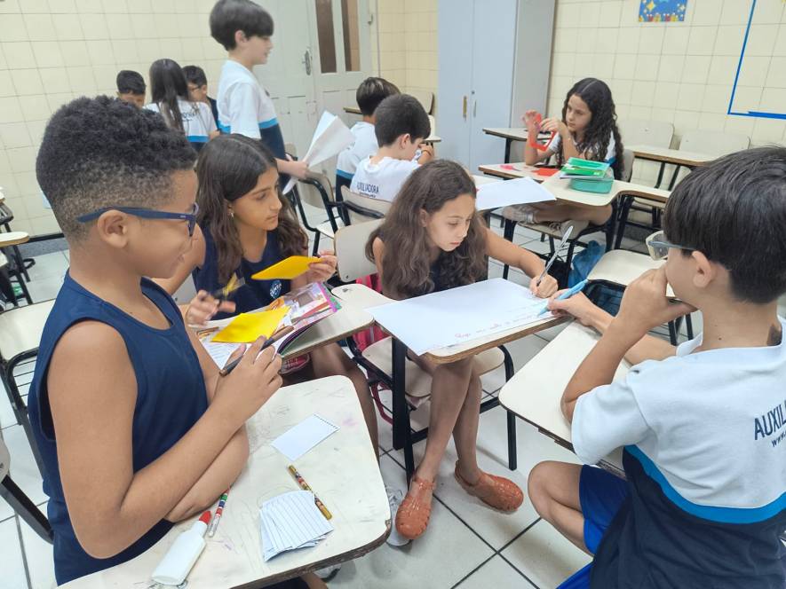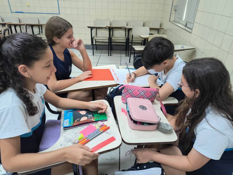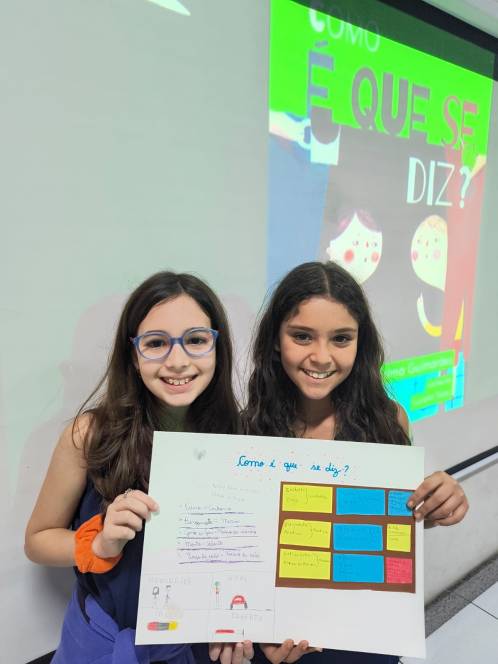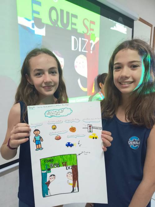 O 5º ano fundamental do CENSA participou de uma dinâmica inspirada no livro "Como é que se diz", de Telma Guimarães. A atividade aconteceu entre os dias 8 e 10 de julho, nas aulas de Língua Portuguesa. Divididos em grupos, os alunos identificaram, na obra, palavras e expressões regionais e, a partir daí, pesquisaram seu significado e construíram cartazes apresentando suas origens e variações.