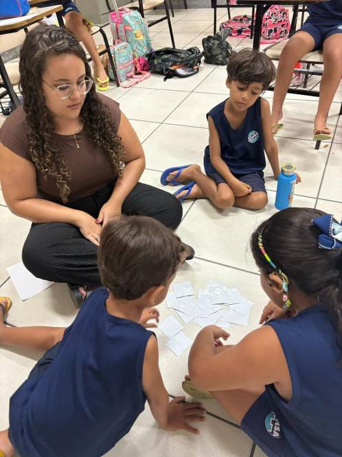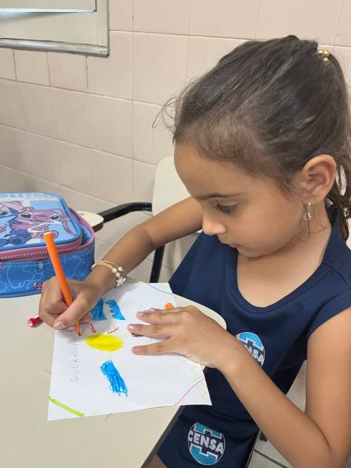 As primeiras aulas do Programa LIV dos 1ºs e 2º anos do Ensino Fundamental do CENSA aconteceram em forma de roda de conversa e dinâmicas que incentivam a troca e o auto conhecimento. Uma das atividades foi o Jogo da Memória das Emoções. Nele, as cartas representavam emoções do cotidiano como medo, alegria, raiva, tristeza e ao acertarem o par correspondente, os alunos deveriam desenhar um momento em que vivenciaram o sentimento. "De forma lúdica, incentivamos as crianças a reconhecerem suas emoções e a forma como lidamos e reagimos à elas", explicou a professora Luciely Fonseca.