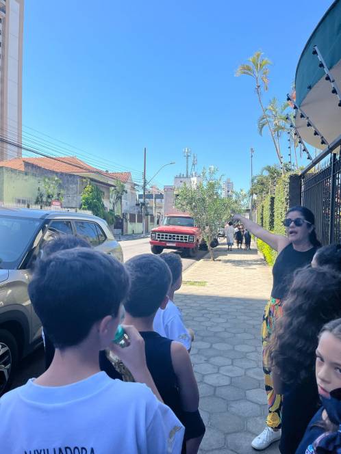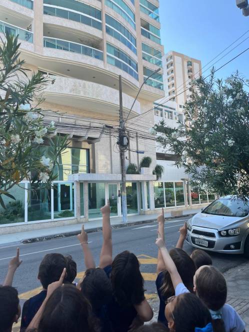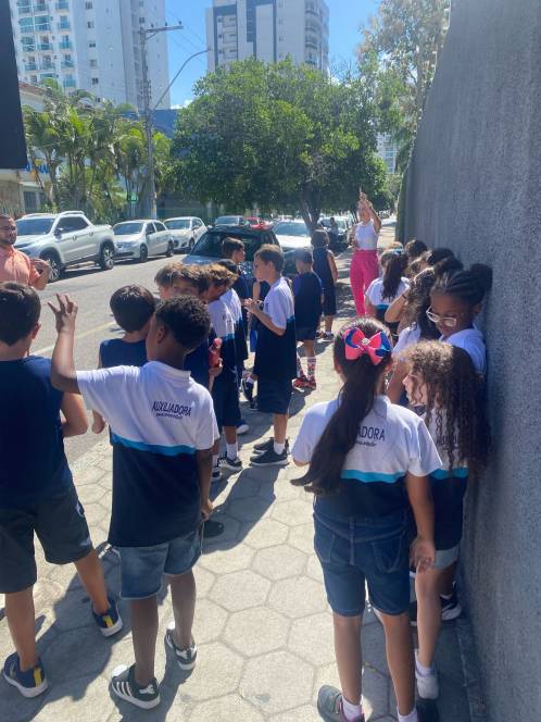 Quinta-feira, 13/3, foi dia de visita orientada para o 3º ano fundamental do CENSA. Empolgados, os alunos caminharam pelo quarteirão da escola, observando e questionando os detalhes do percurso. A atividade ilustrou o conteúdo de Geometria, abordado em sala de aula, e possibilitou uma aula prática dos conceitos abordados. "A descoberta do que nos circunda por meio da visão é um processo ativo, que envolve visitar, pesquisar, coletar informações para que em sala de aula possam ser feitas a classificação, a comparação e a categorização das formas encontradas", disse a professora Inglidy.