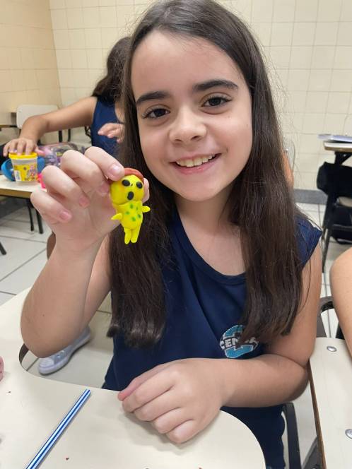 Inspirados no livro "A Casa Comum", de Humberto Herrera, o 4º ano fundamental participou de uma atividade unindo literatura, arte e consciência ambiental. Após refletirem sobre o cuidado com o planeta e os valores apresentados na obra, os estudantes foram convidados a imaginar e modelar, com massinhas, o seu próprio "Guardião da Casa Comum", com poderes especiais responsáveis por proteger a natureza, os oceanos, os animais e todos os seres vivos. Colocando a criatividade para fora, os alunos construíram figuras únicas, cheias de cores e significados. Ao final, apresentaram seus guardiões para os colegas, explicando sua missão e seus poderes. "A prática foi um momento de expressão artística e também de conscientização sobre o papel de cada um na preservação do nosso planeta, reforçando a mensagem de que todos nós podemos ser guardiões da Casa Comum.", explicou a coordenadora Shayanne Ferreira.