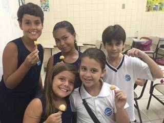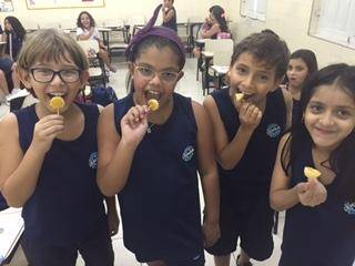Para aprender melhor o início da Colonização do Brasil, através do cultivo da cana e da produção do açúcar, nada como saborear um doce de origem portuguesa e considerado um doce típico da nossa cidade, o chuvisco! Hum... Que delícia! Os alunos do 4º Ano pediram "bis"!