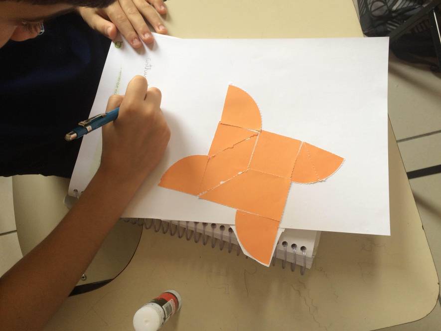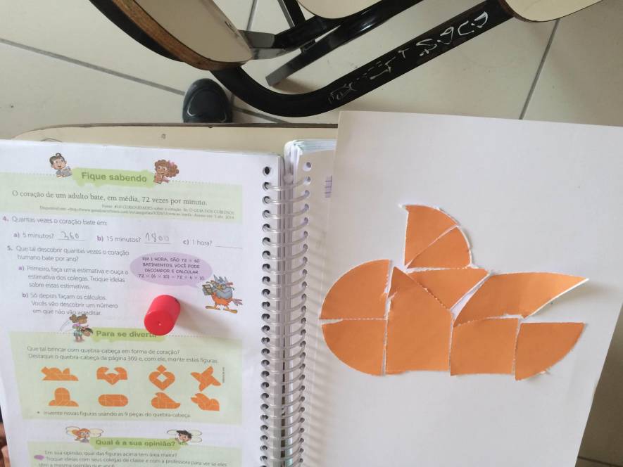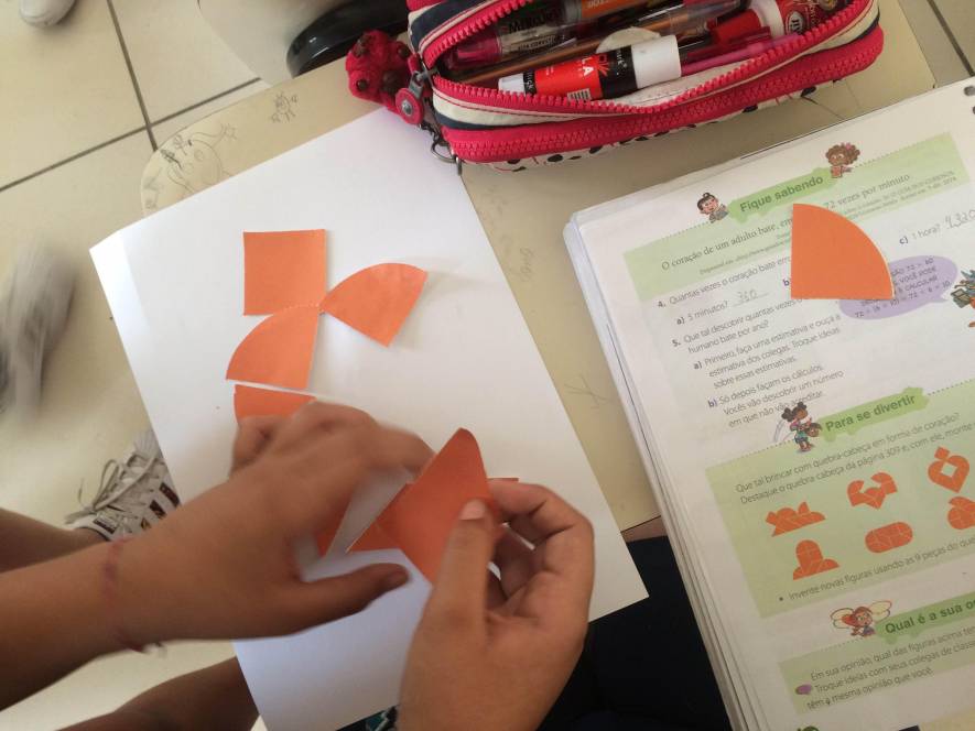 Os alunos do 5° ano aprimoraram seus conhecimentos geométricos criando novas formas a partir de figuras planas conhecidas. A criatividade e a imaginação tornaram a aula muito produtiva.