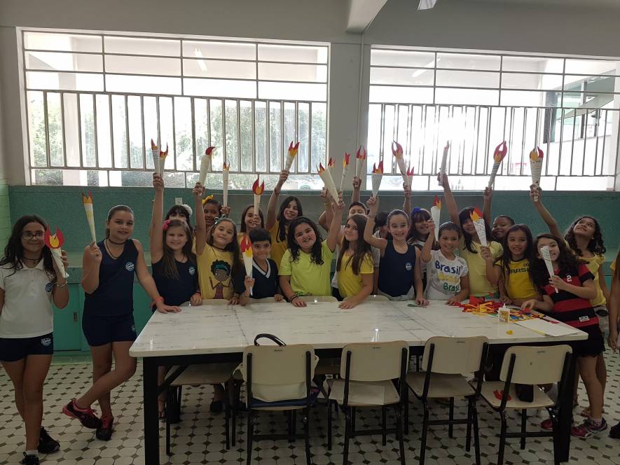 Nossa torcida está com essa animação! O 4° ano reproduziu a tocha olímpica através da técnica de recorte e colagem. Um momento de diversão e desenvolvimento da criatividade. Vamos Brasil!!!