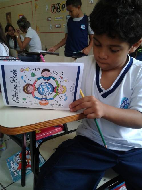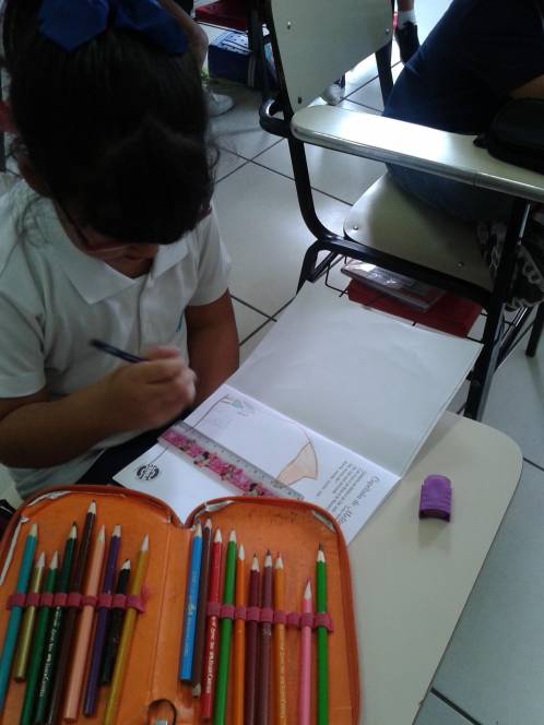 Produção de desenhos através das canções folclóricas cantadas e tocadas nas aulas de Música. Expressão da criatividade e emoção a cada canção.