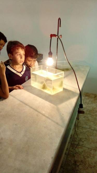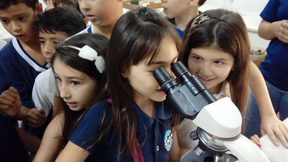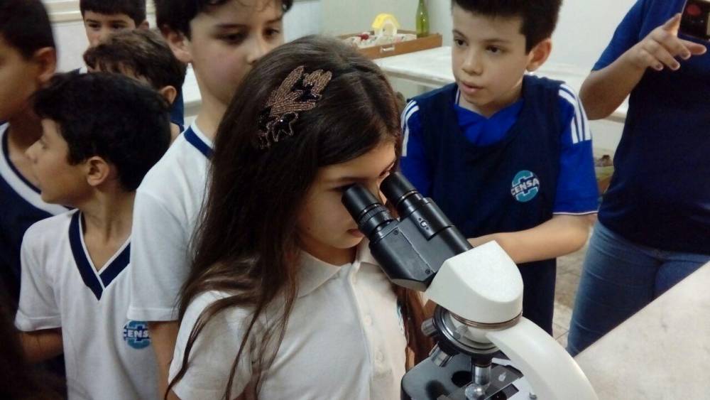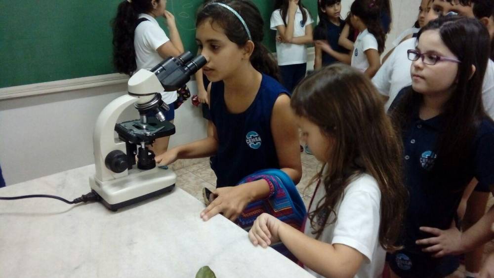 Os alunos do 3° ano estão cada vez mais interessados pela vida das plantas. Na última visita ao laboratório de Ciências, no dia 14/09/2016, eles observaram a estrutura de uma folha no microscópio e também viram uma representação prática de como ocorre a fotossíntese. Essa é uma maneira de relacionar a teoria com a prática!