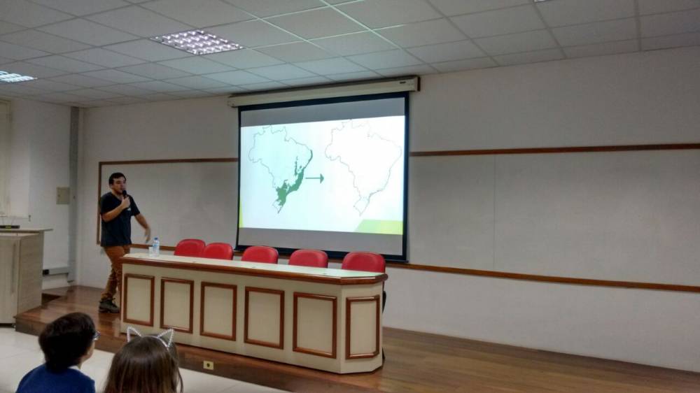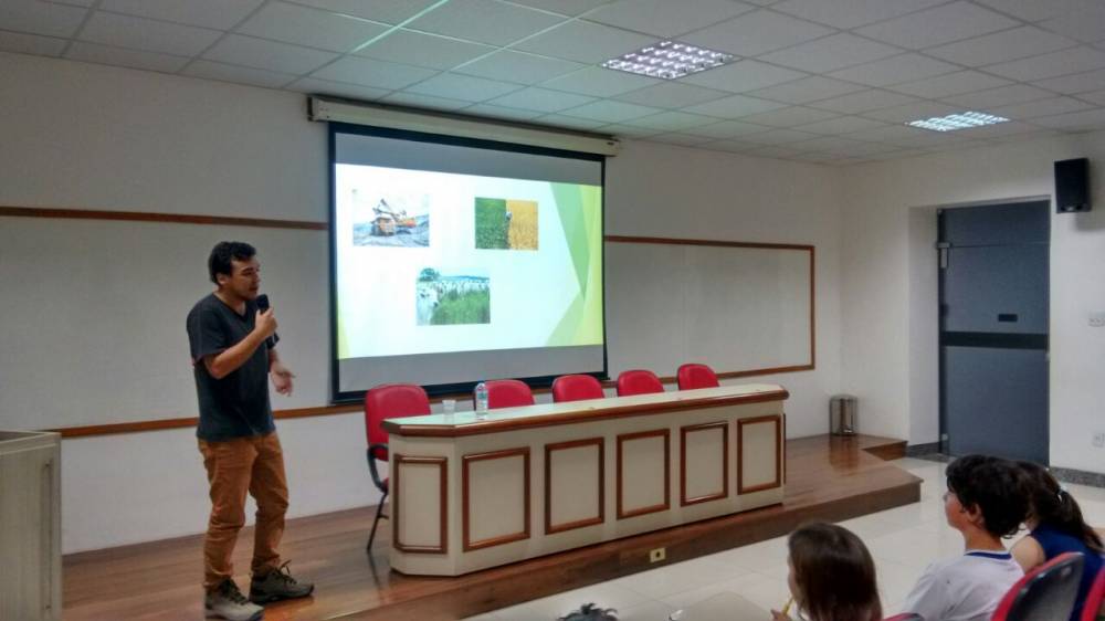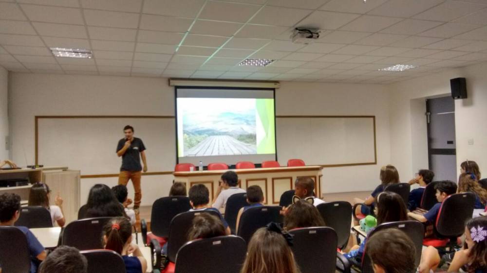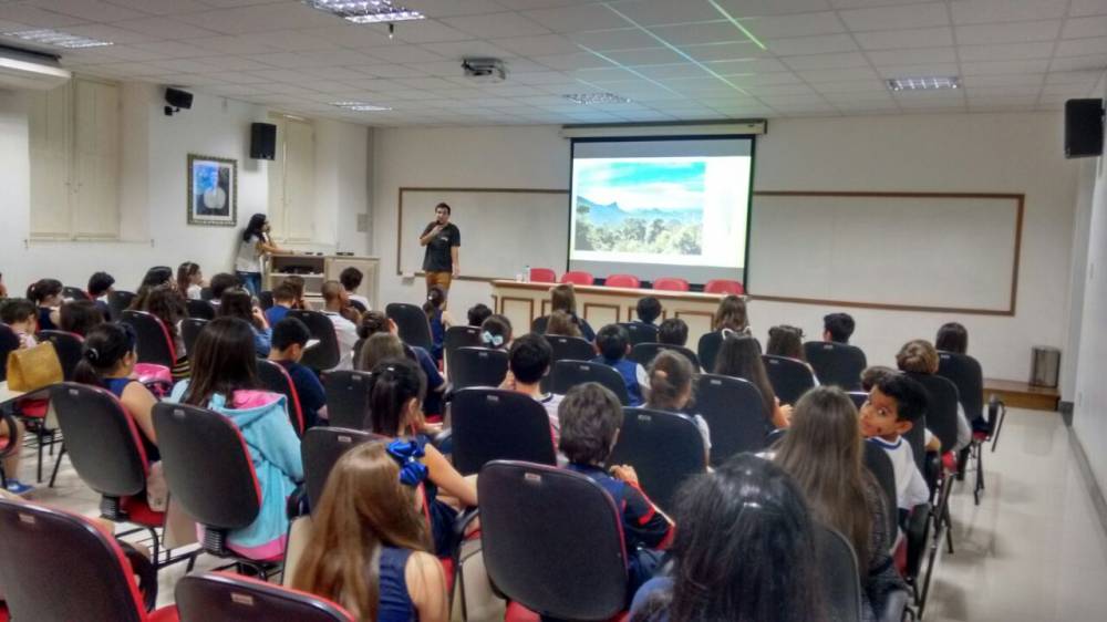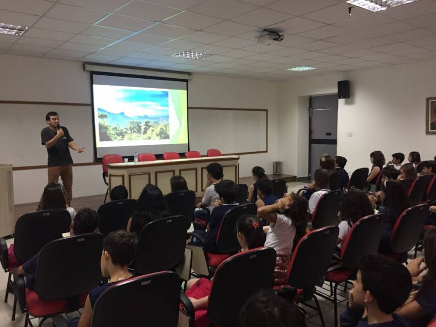 O 4º ano do Ensino Fundamental recebeu, na segunda-feira, 31 de julho, a visita do economista Guilherme Vasconcelos Pereira. Relacionando o uso da terra para a produção de minério, agricultura e pecuária, o convidado falou sobre a utilização e a destruição da Mata Atlântica, alertando para as consequências geradas para o nosso bioma.