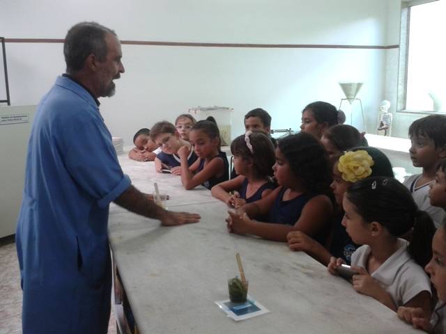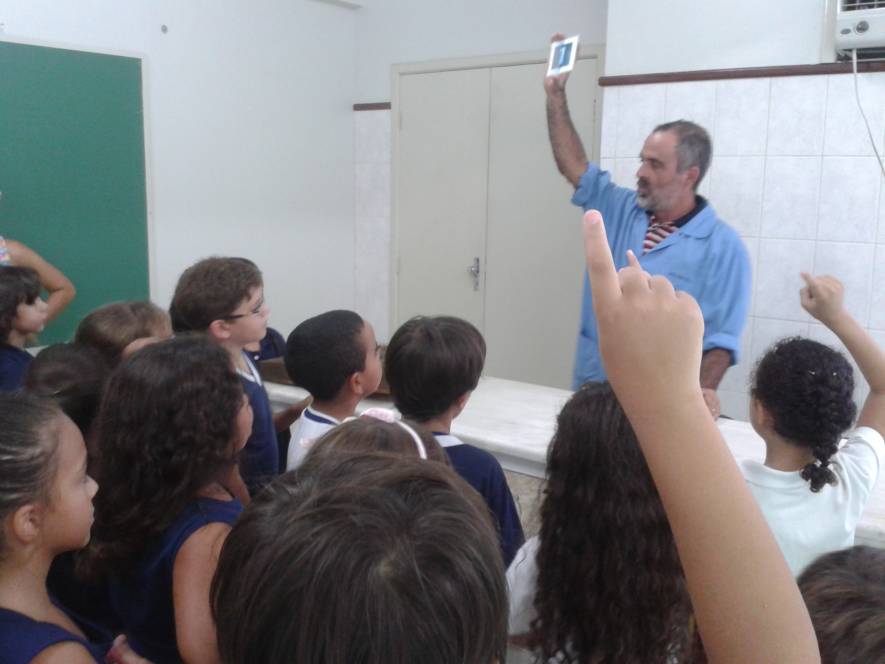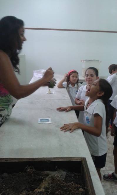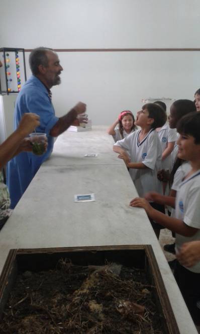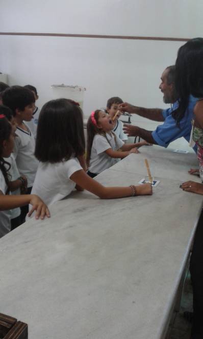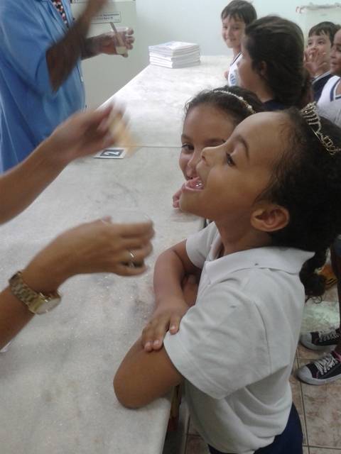 Ricardo, técnico responsável pelo laboratório de Ciências preparou uma experiência que as crianças eufóricas com as descobertas.