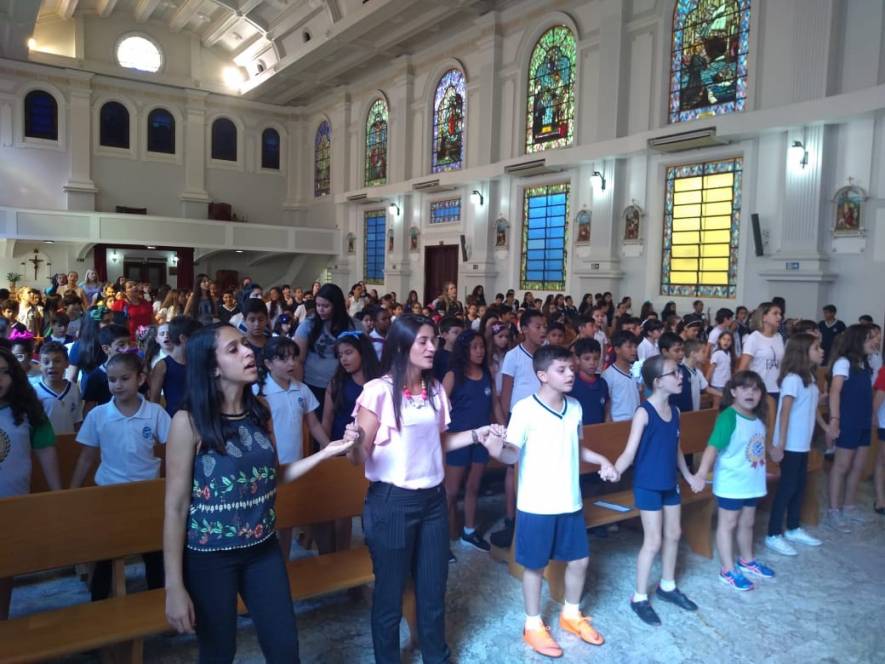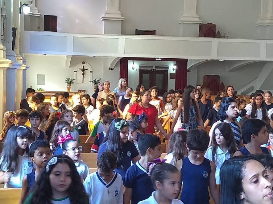 O Fundamental I do CENSA se reuniu na Capela da escola, na tarde de 4 de dezembro, para uma celebração de ação de graças. Partindo da leitura de Eclesiastes 3, sobre o tempo de cada coisa, os alunos do 2º ao 5º ano, professores e direção agradeceram as conquistas de 2018 e fizeram suas preces para o ano novo que se aproxima.