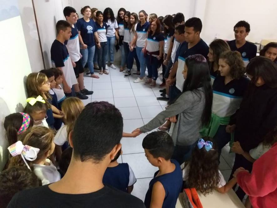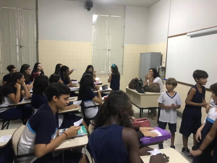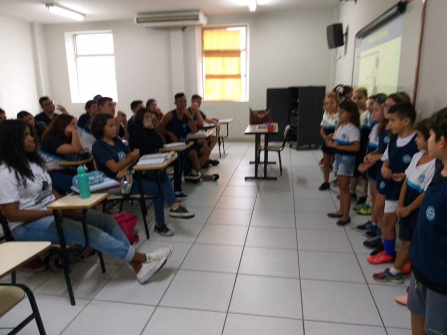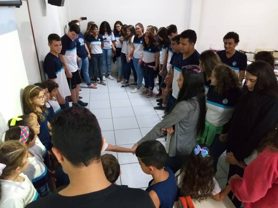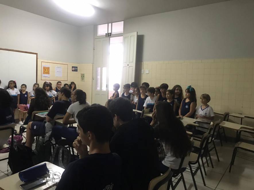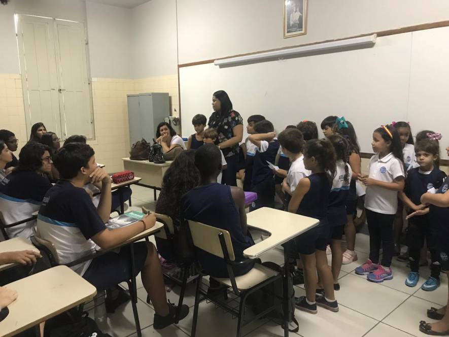 O Ensino Médio do CENSA recebeu a visita do 2º ano do Fundamental, na terça-feira, 9 de abril. Com o objetivo de rediscutir a responsabilidade pelo espaço comum, a garotada trocou ideias sobre direitos e deveres, educação para a solidariedade e conscientização sobre a necessidade de uma transformação individual em prol de todos.
