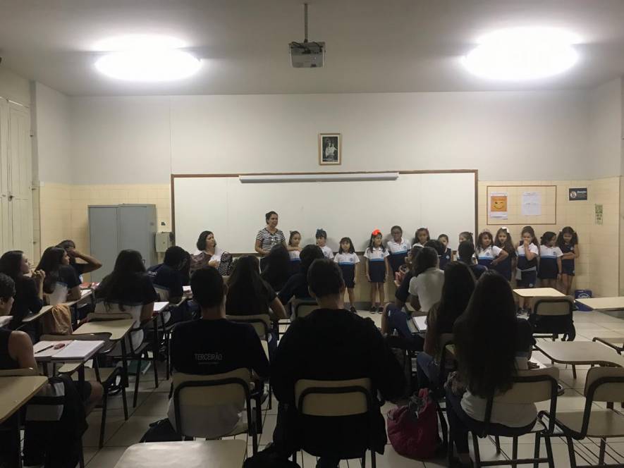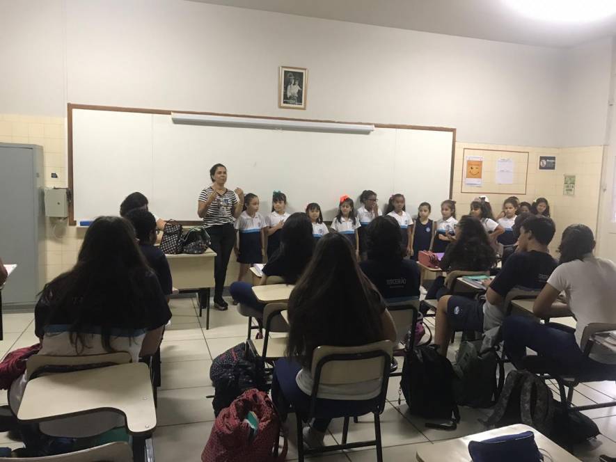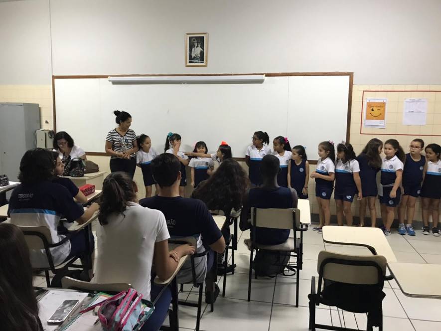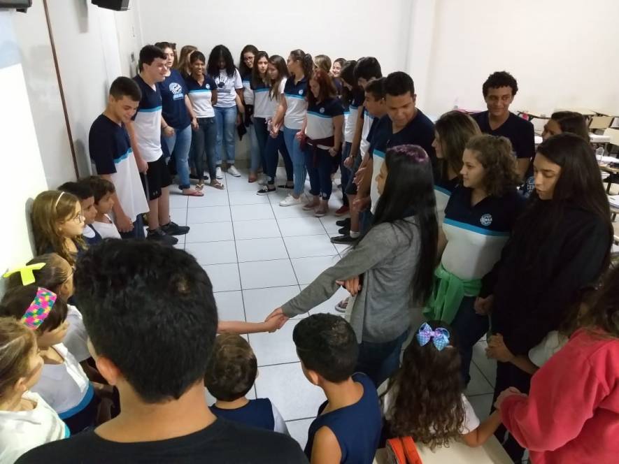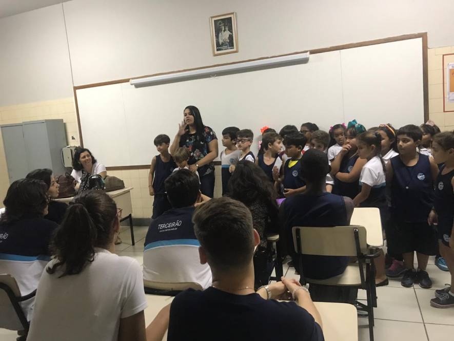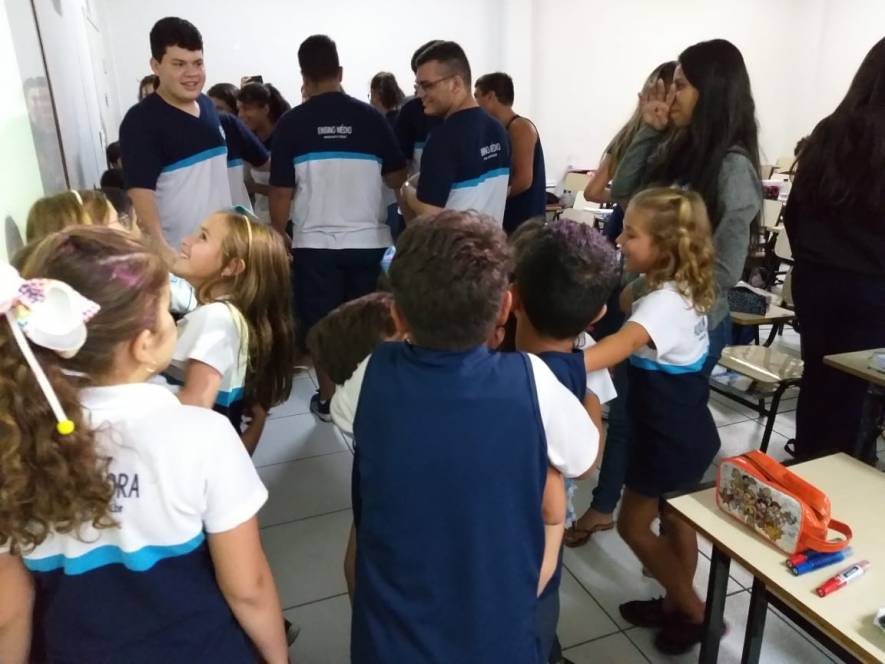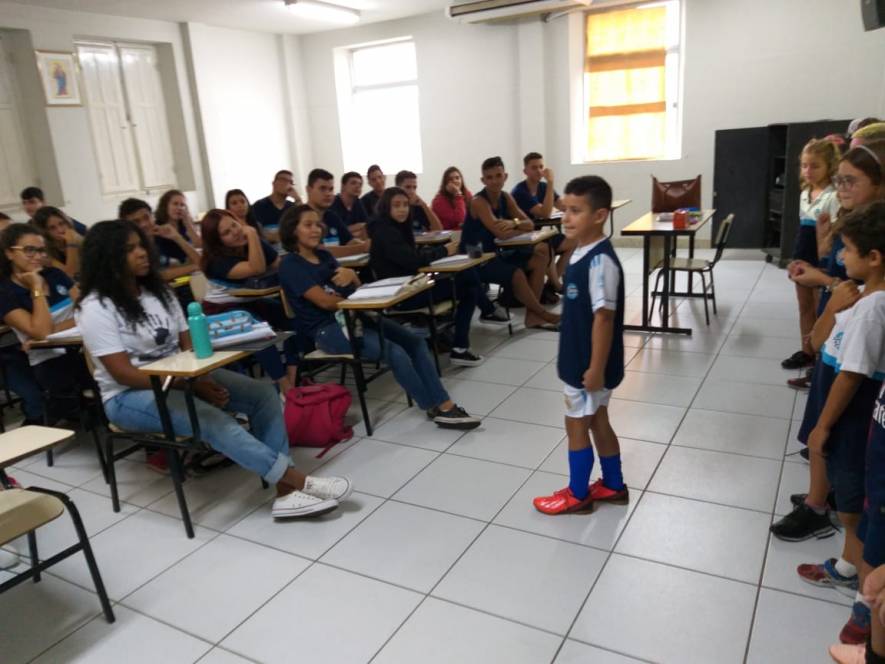 O Ensino Médio do CENSA recebeu a visita do 2º ano do Fundamental, na terça-feira, 9 de abril. Com o objetivo de rediscutir a responsabilidade pelo espaço comum, a garotada trocou ideias sobre direitos e deveres, educação para a solidariedade e conscientização sobre a necessidade de uma transformação individual em prol de todos.