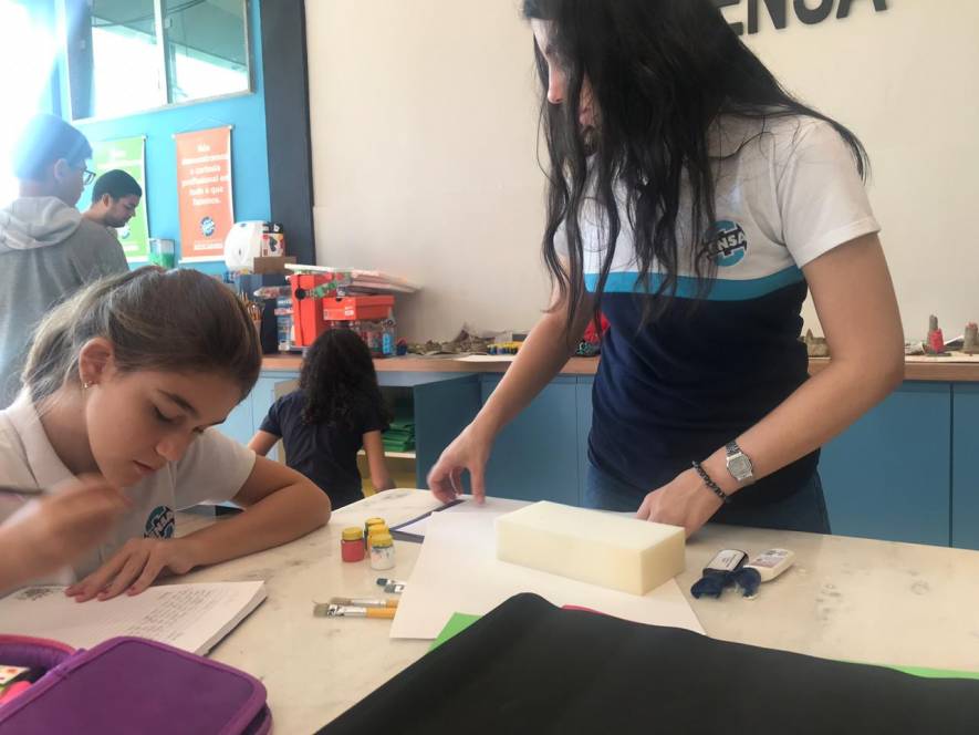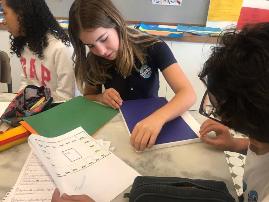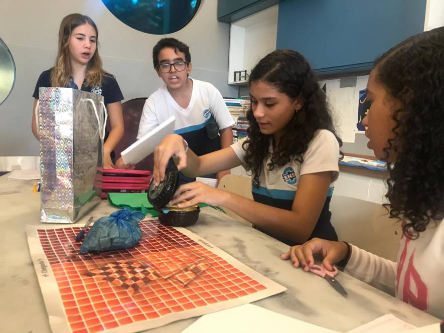 Trabalhando na confecção de jogos de palavras, o 7º ano Fundamental do CENSA utilizou o Espaço Maker na manhã de 28 de maio, para dar forma planejado, criando estratégias para materializar o lúdico. Segundo a professora Daniel Ulrick, "o objetivo desta proposta é transformar materiais e aplicá-los ao conhecimento da língua apreendido, fazendo com que os alunos sejam autores do próprio processo de aprendizagem.