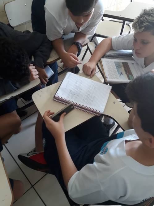 Reunidos em grupos, na aula de Ciências da segunda-feira, 24 de junho, o 6º ano Fundamental do CENSA se dedicou a criar uma palavra cruzada tendo como tema os termos estudados em Ecologia. A dinâmica exigiu uma pesquisa prévia sobre os fatores abióticos e bióticos de um ecossistema.