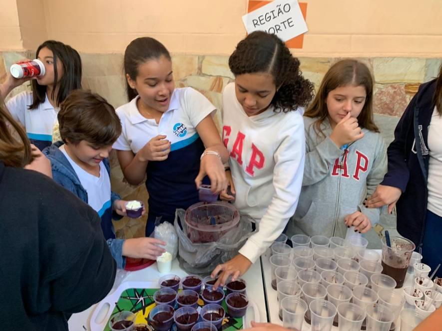 Finalizando o projeto "Regiões do Brasil: a question of taste", o 7º ano fundamental do CENSA apresentou o resultado do trabalho que integrou as disciplinas de Inglês e Geografia. No dia 9 de julho, os alunos exibiram os vídeos gravados no Espaço Maker e editados utilizando a técnica do chroma key. As diferenças culturais entre as cinco regiões do Brasil foram mostradas na perspectivas dos estrangeiros, com diálogos em inglês sobre a Amazônia, Bahia, Cerrado e praias cariocas. Fechando a apresentação, os alunos ainda degustaram iguarias típicas de cada região.