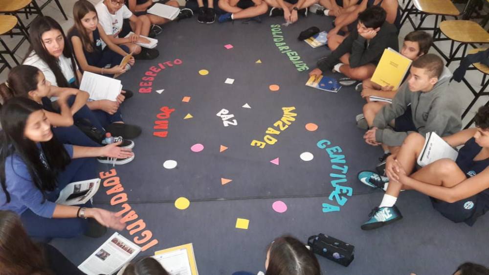Para responder a esta situação-problema, a opção foi o aprendizado coletivo, com a criação de uma roda de conversa. Muitas questões foram suscitadas e debatidas, trazendo valiosa contribuição ao estudo. Como mediadora, Fátima alimentou a discussão. Três alunos foram responsáveis pelo fechamento da conversa, expondo as ideias mais interessantes e apresentando práticas sociais de combate ao bullying, ou a qualquer forma de preconceito, e ressaltando que a sala de aula é o primeiro espaço para colocá-las em prática.