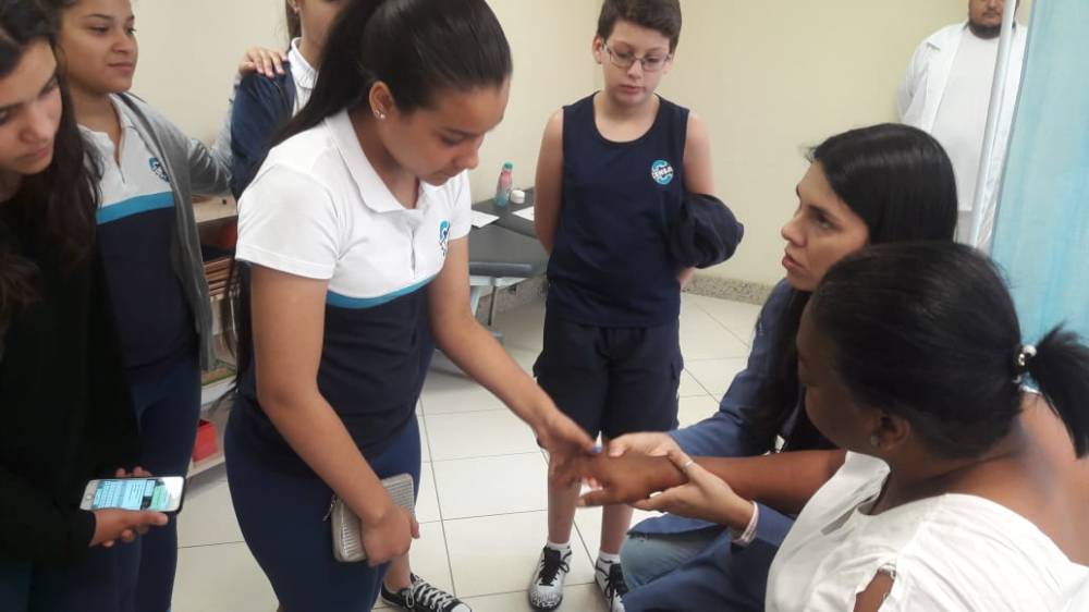 Desenvolvendo o Projeto "Exoesqueleto Robótico", o 7º ano fundamental do CENSA participou de uma aula prática na manhã de 5 de setembro. A atividade aconteceu na CEMA - Clínica Escola Maria Auxiliadora, onde os alunos puderam observar a reabilitação motora dos pacientes. Recepcionados pela fisioterapeuta Camila Santana, coordenadora da CEMA, o grupo tirou dúvidas quanto aos sintomas e consequências do AVC e conheceu o tratamento adequado para cada caso.