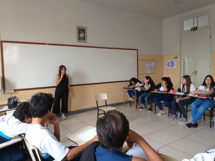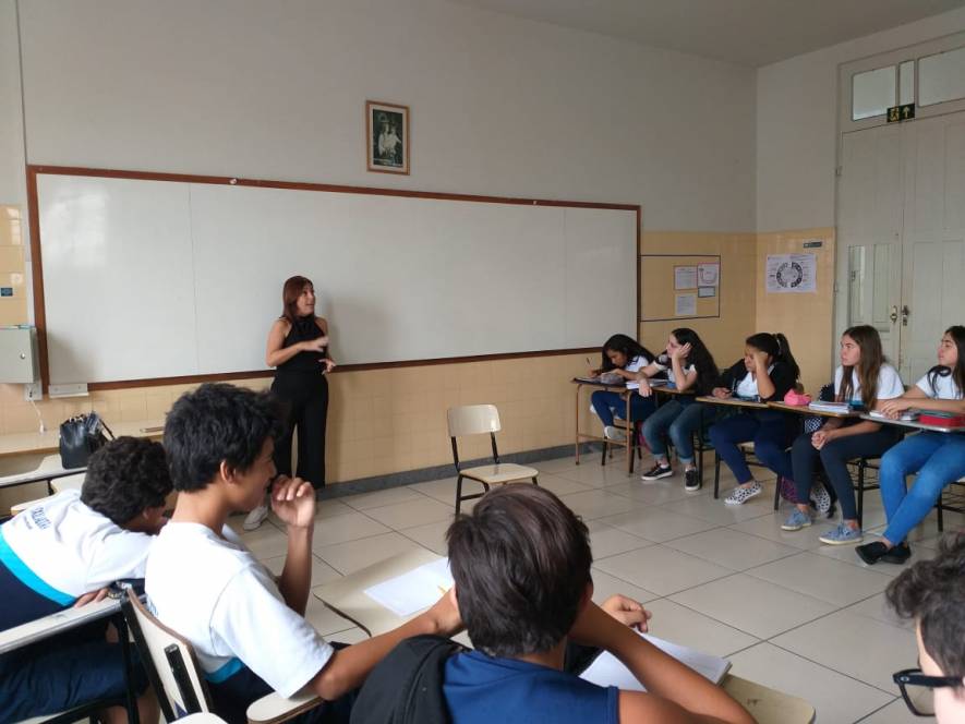 O 8º ano fundamental do CENSA recebeu a engenheira civil Renata Junquilho, para uma roda de conversa, no dia 4 de setembro. O encontro foi mais uma etapa do projeto "Semáforo inteligente: tecnologia assistiva para promoção de segurança e independência na locomoção de deficientes visuais", desenvolvido atualmente pelos alunos. Além de expor os principais desafios enfrentados pelas pessoas com deficiência em relação à locomoção e ao trânsito, a convidada ainda mediou o processo de definição dos recursos que serão utilizados para criação da tecnologia que será inserida no semáforo, bem como a construção do protótipo e a viabilidade de aplicação na realidade local.