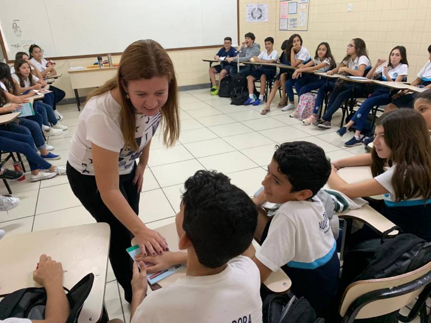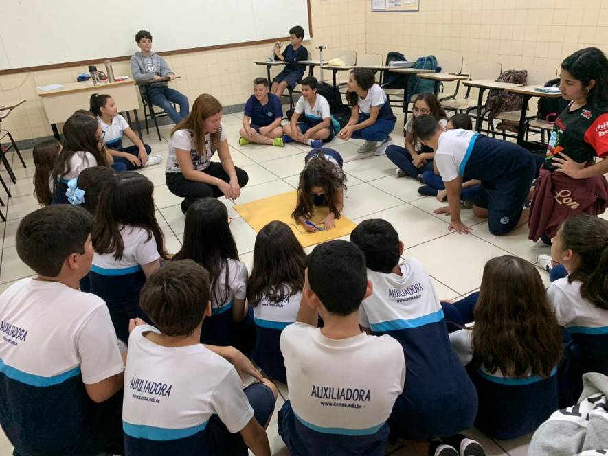 Dando sequência ao projeto "Bullying: aqui, não!", o 6º ano fundamental do CENSA recebeu a visita da psicóloga Paula Seabra, no dia 12 de setembro. A convida, que é uma das coordenadoras da Clínica de Psicologia do ISECENSA, promoveu uma roda de conversa onde, além de explicar os conceitos sobre bullying, trabalhou o auto-conhecimento e a auto-estima dos alunos.