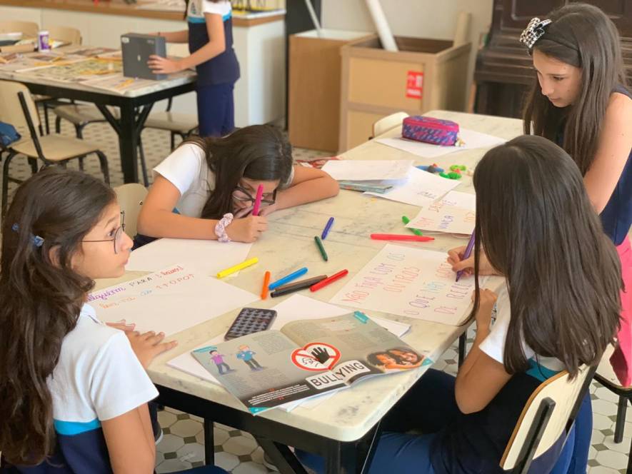 O 6º ano fundamental do CENSA deu mais um passo no desenvolvimento do projeto "Bullying: aqui não!". Ilustrando o tema, os alunos receberam a psicopedagoga do ISESAP - Serviço de Atendimento Psicopedagógico do ISECENSA Cecília Burla, no dia 18 de setembro. Numa dinâmica bem interessante, a convidada propôs uma reflexão sobre as atitudes para com o outro utilizando músicas de Ana Paula Valadão e Jason Mars e estabeleceu uma roda de conversa para discutir como, efetivamente, é possível ajudar quem sofre bullying. As sugestões foram tantas que a garotada decidiu fazer uma cartilha com os principais itens.